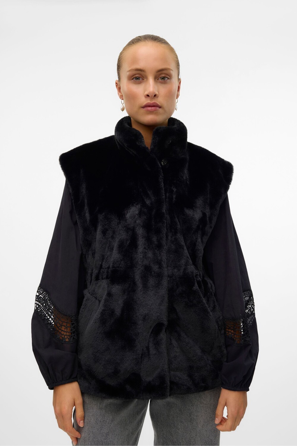 Жилет без рукавов из искусственного меха Vero Moda, черный