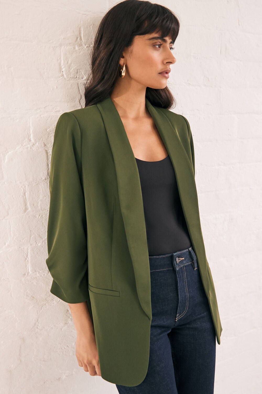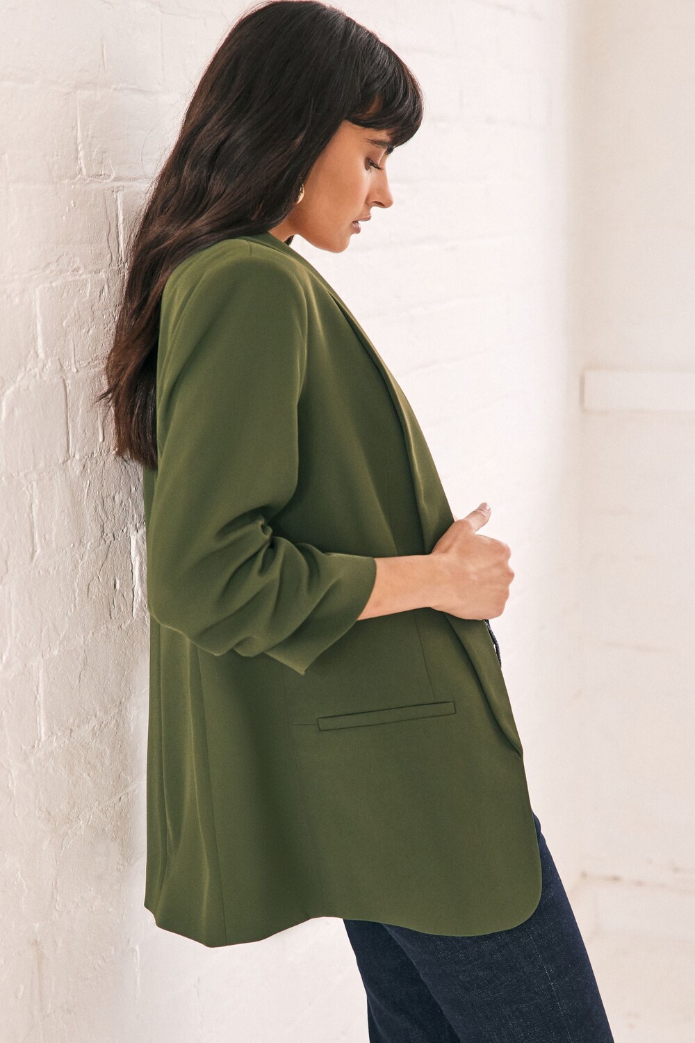 Свободный блейзер с присборенными рукавами Next, зеленый