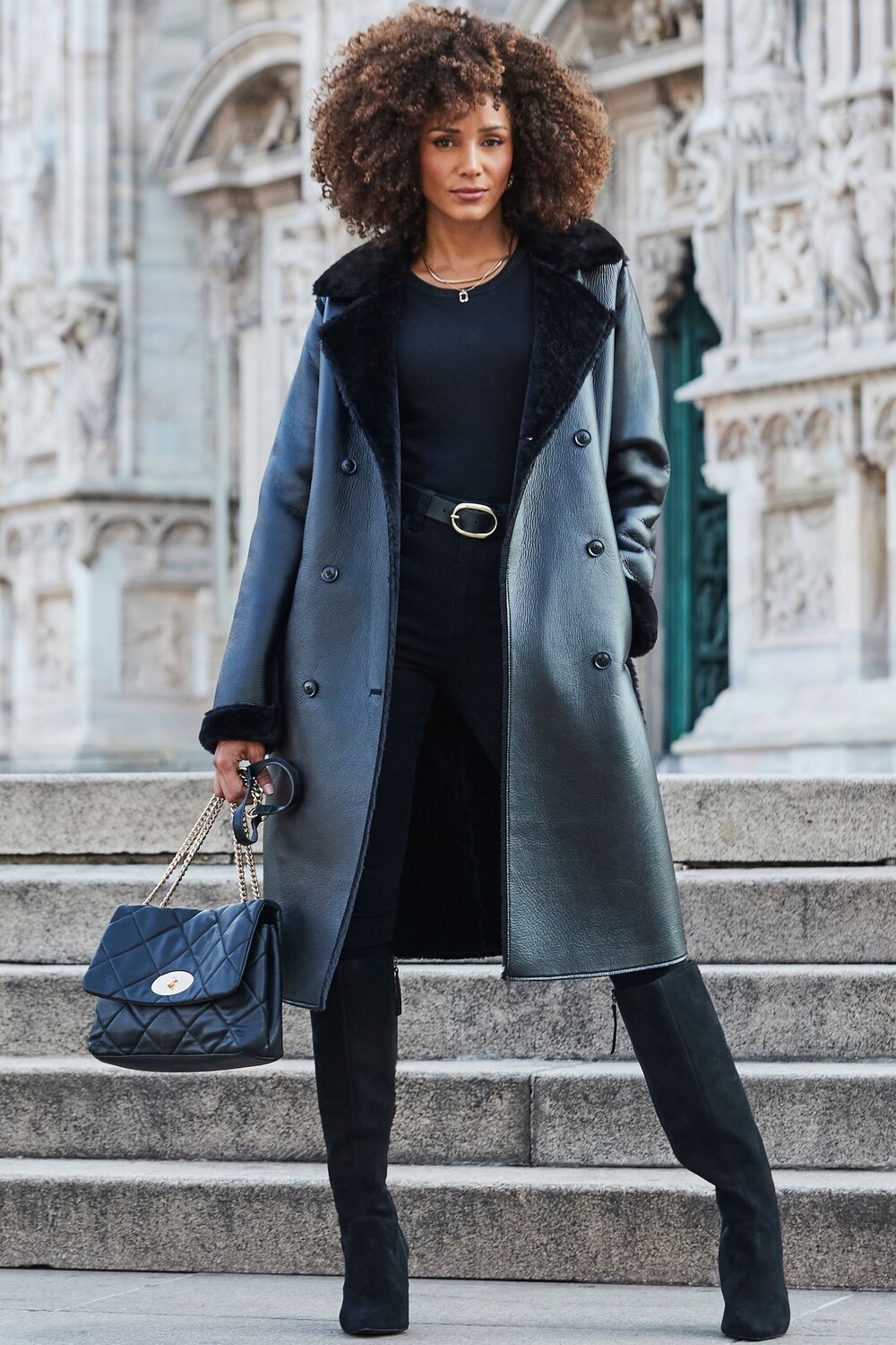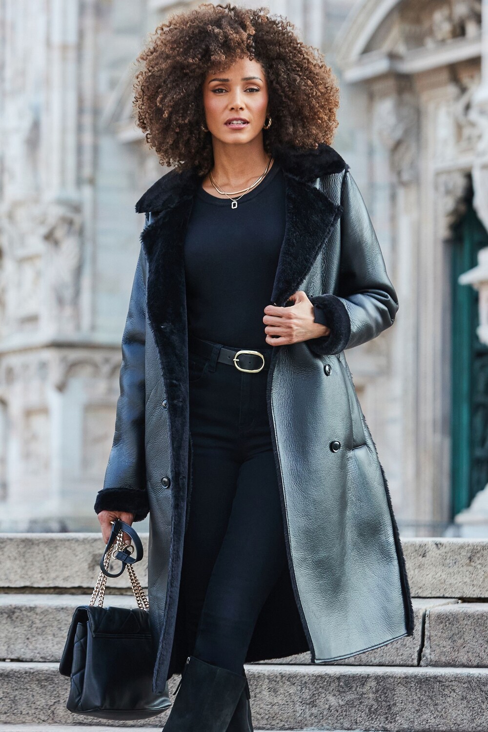 Пальто из искусственной овчины с поясом Sosandar, черный