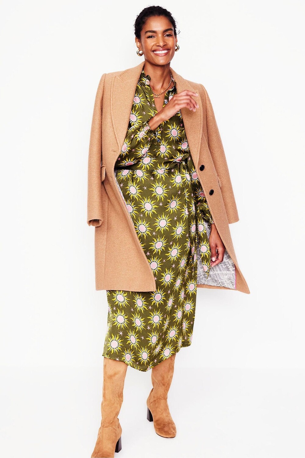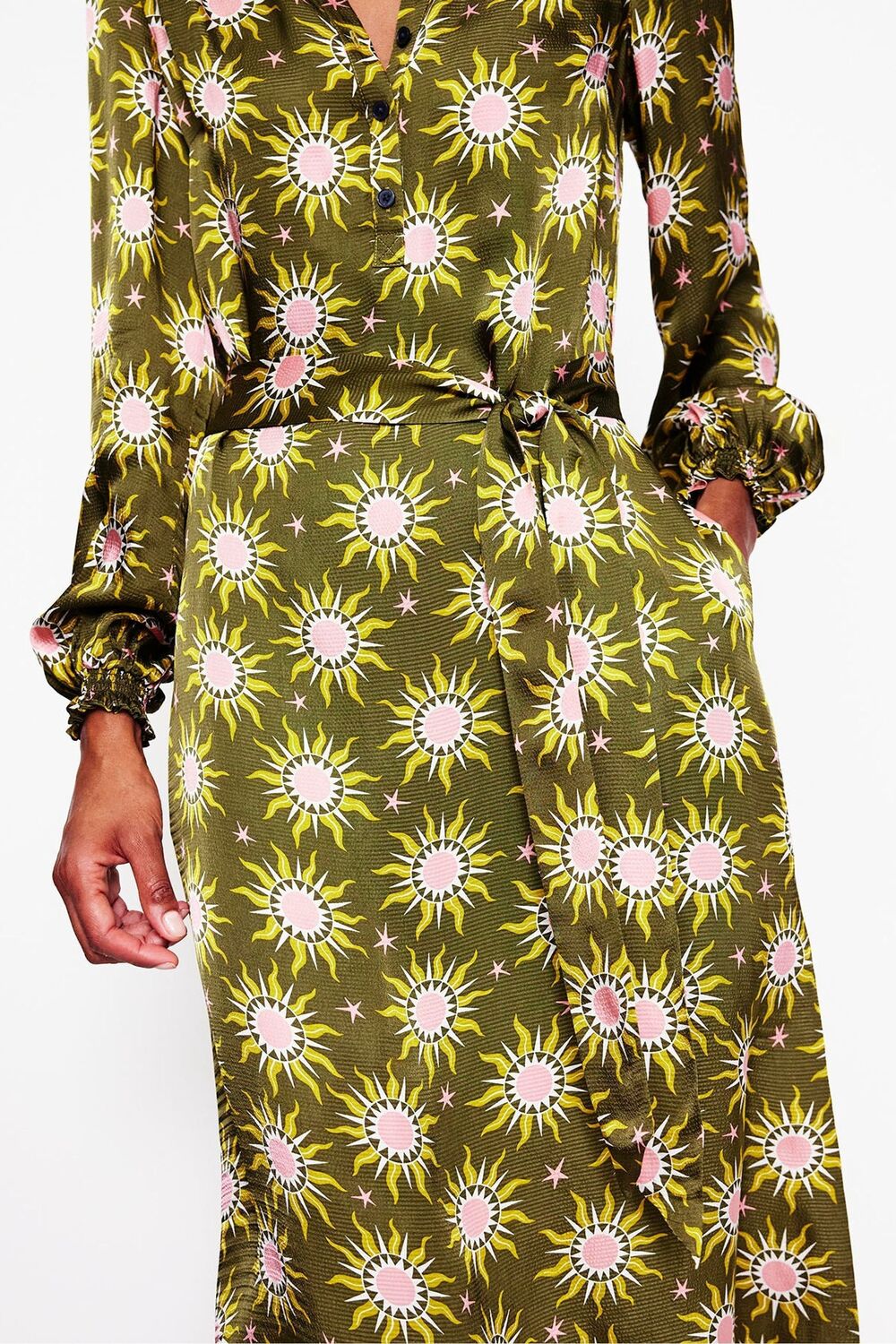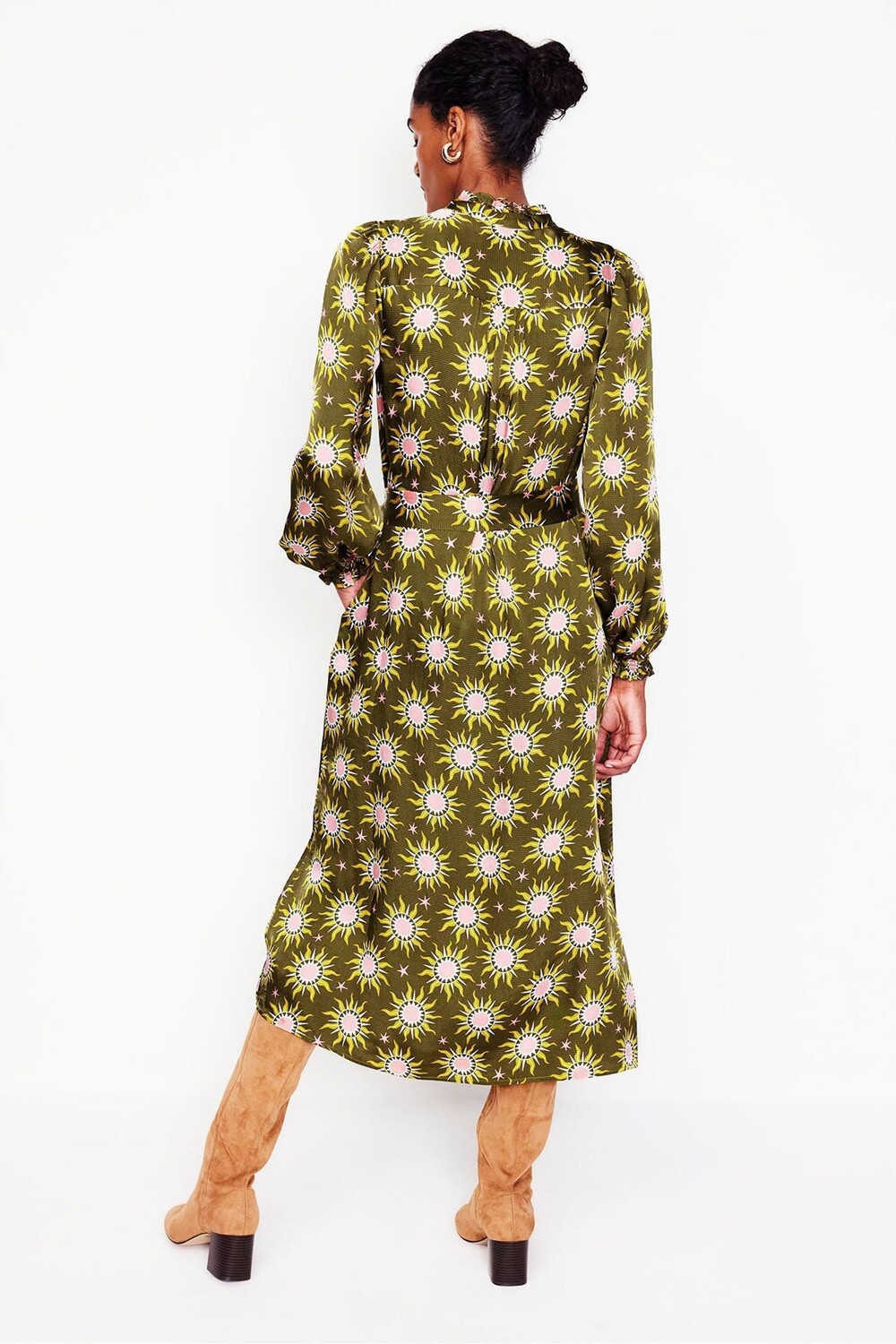 Платье миди из атласа цвета жасмин Boden, зеленый