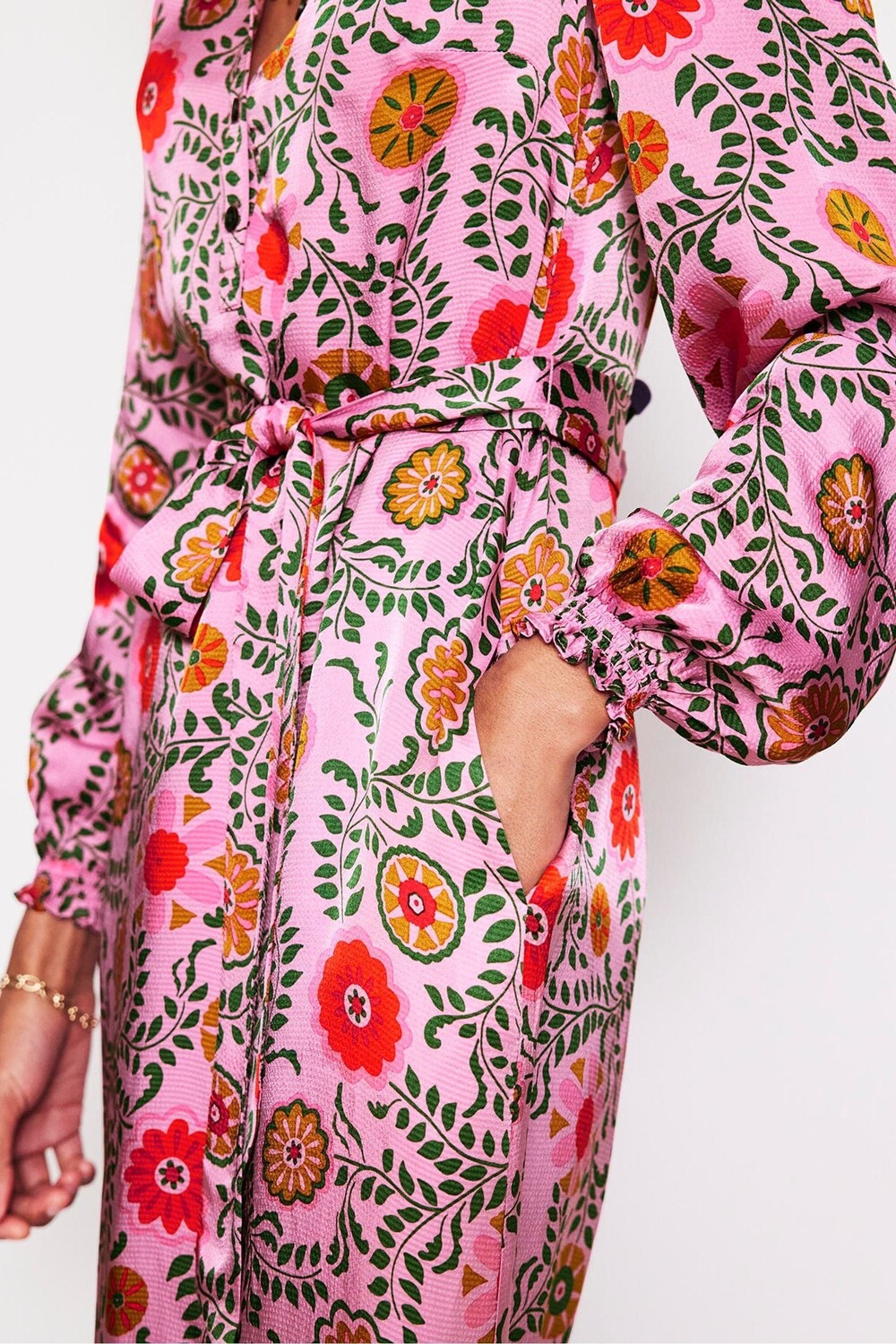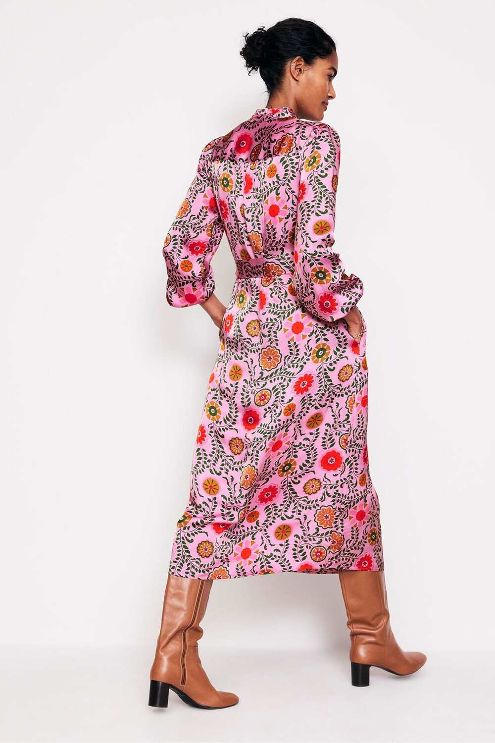 Платье миди из атласа цвета жасмин Boden, розовый