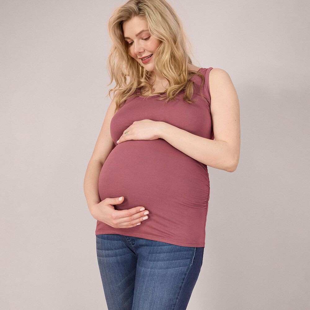 Окунитесь в материнство со стилем, комфортом и уверенностью в этой женской майке со сборками по бокам от Motherhood.