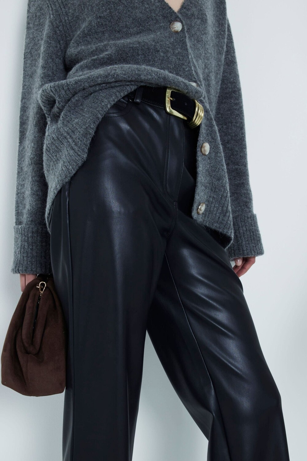 Свободные прямые брюки из искусственной кожи River Island, черный