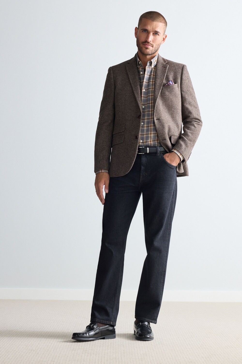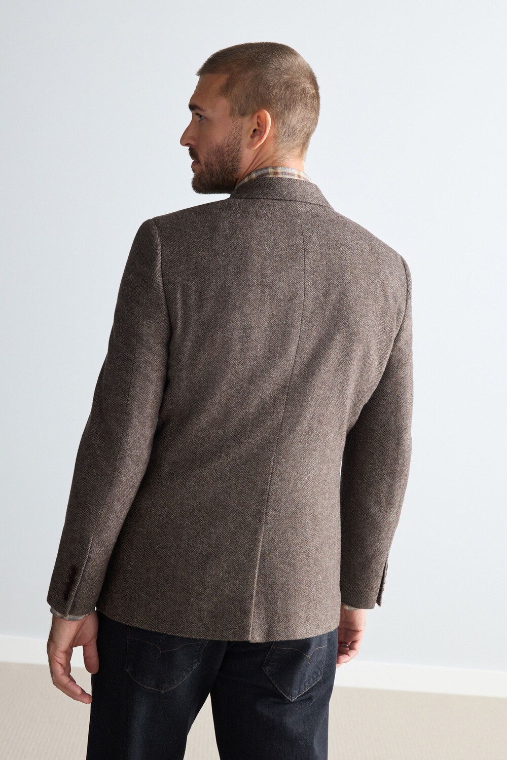 Шерстяной блейзер Nova fides с узором «в ёлочку» Next, коричневый 27 592₽