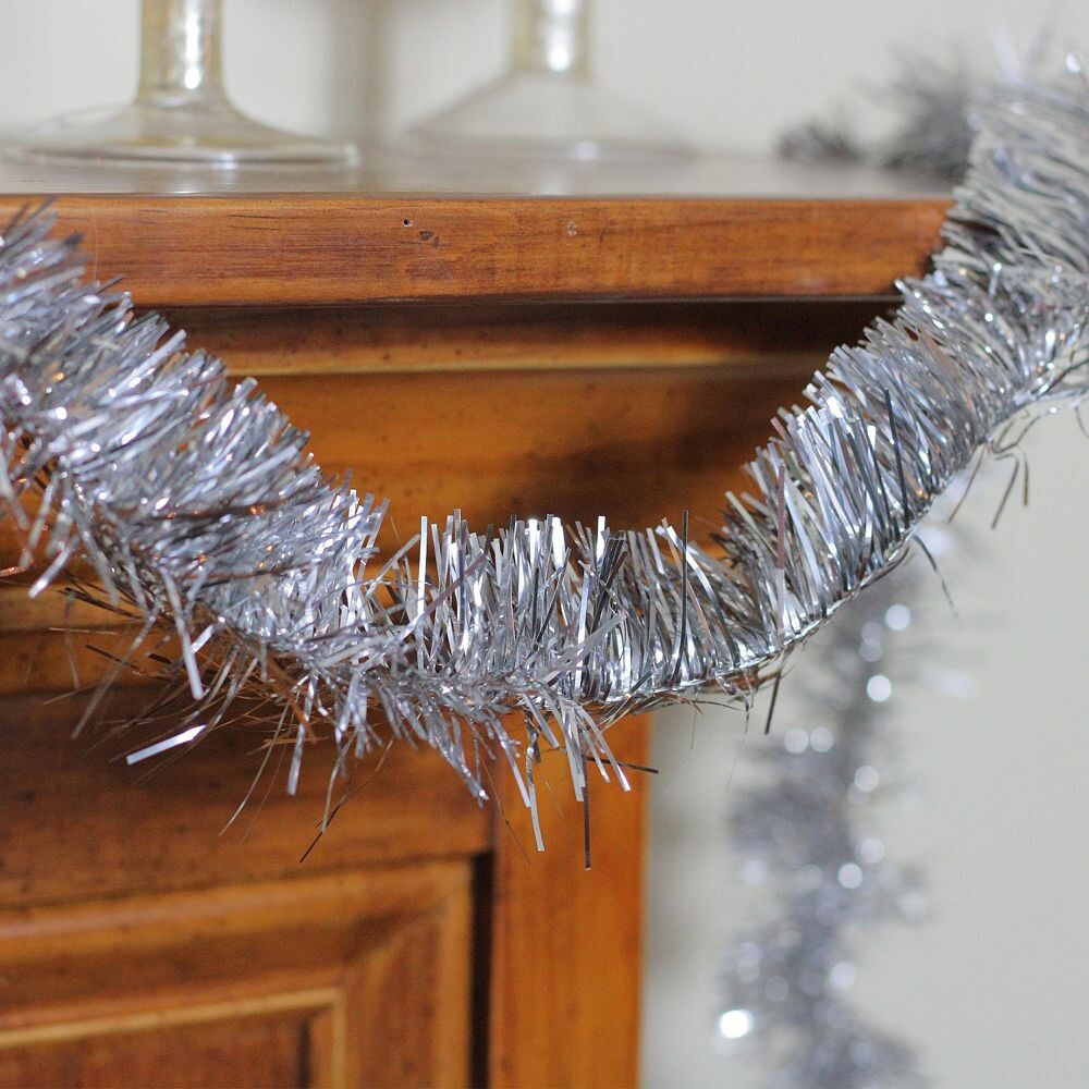 Сделайте любую комнату вашего дома радостной и яркой благодаря этой искусственной рождественской гирлянде Northlight Silver Tinsel.