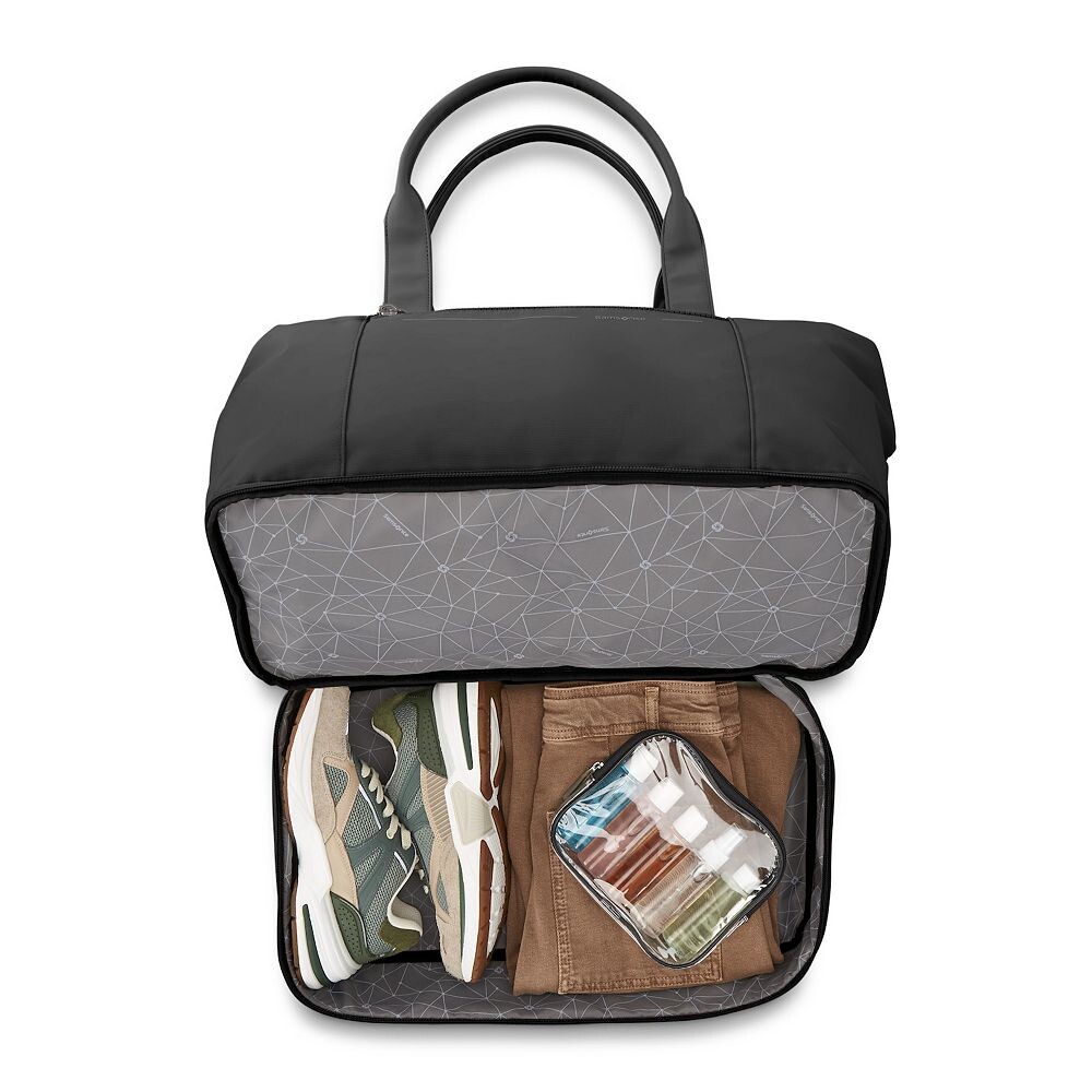 Эта спортивная сумка Samsonite Better Than Basics Drop Bottom Weekender с откидным дном, идеальная для отдыха на выходных, идеально подходит для короткой поездки или повседневного использования!