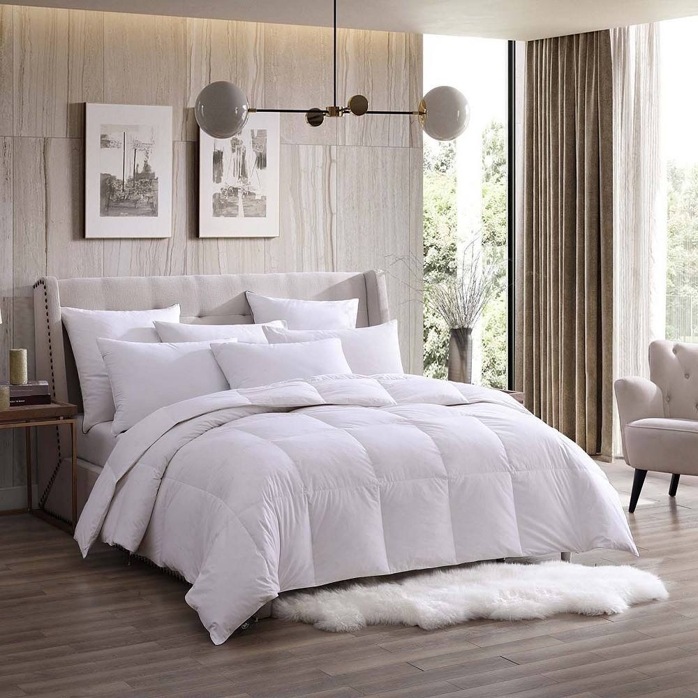Вам будет тепло и уютно с этим одеялом из белого гусиного пера и пуха Serta.