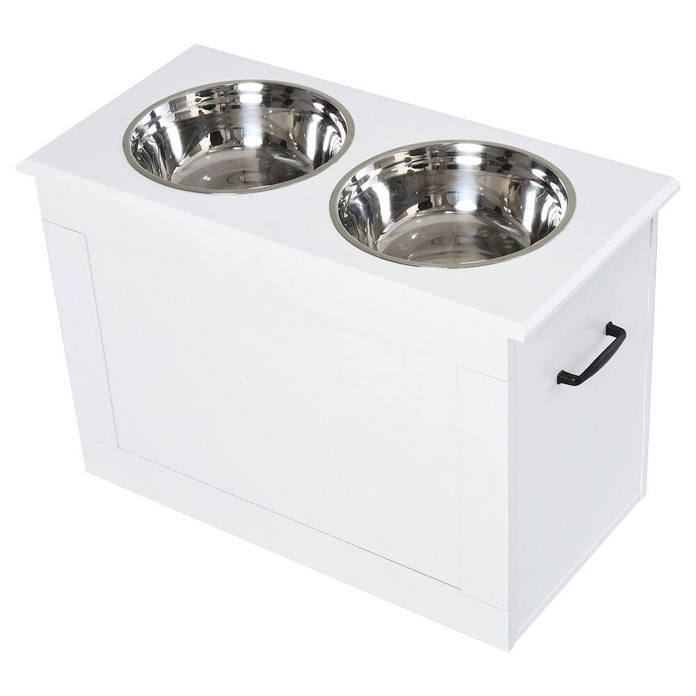 Станция для хранения корма для домашних животных PawHut с подставкой из 2 мисок из нержавеющей стали для крупных собак и других крупных домашних животных, белая, коричневый