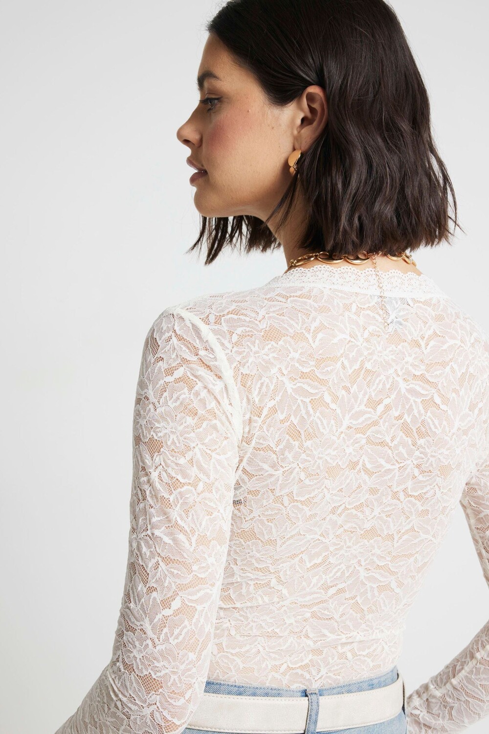 Боди с глубоким вырезом и кружевом River Island, белый
