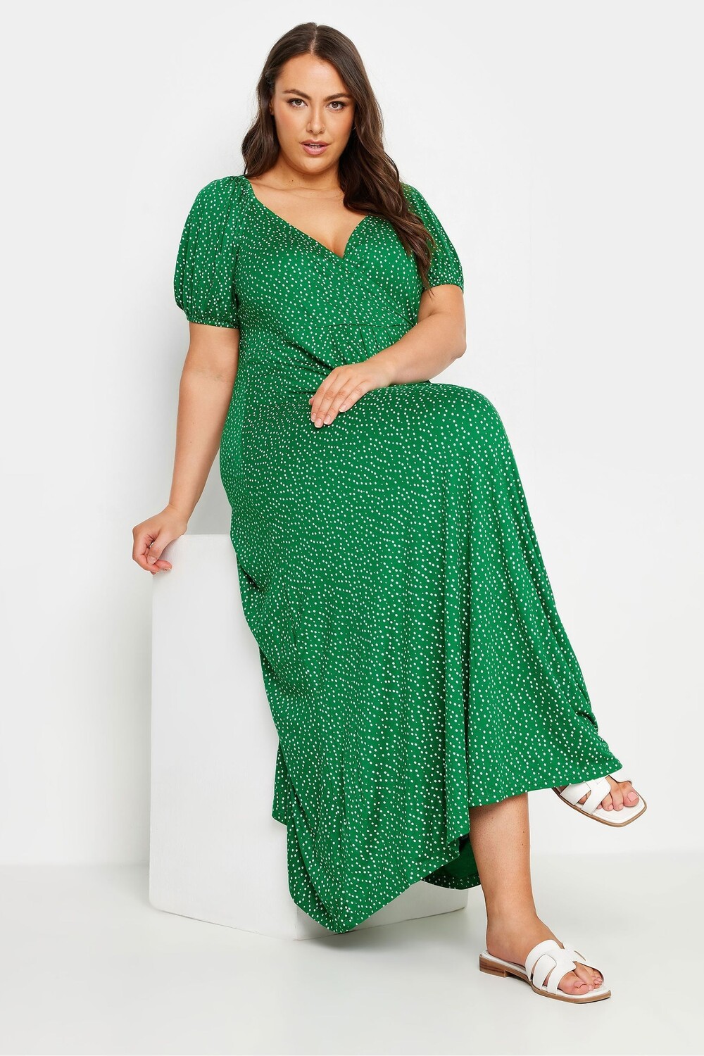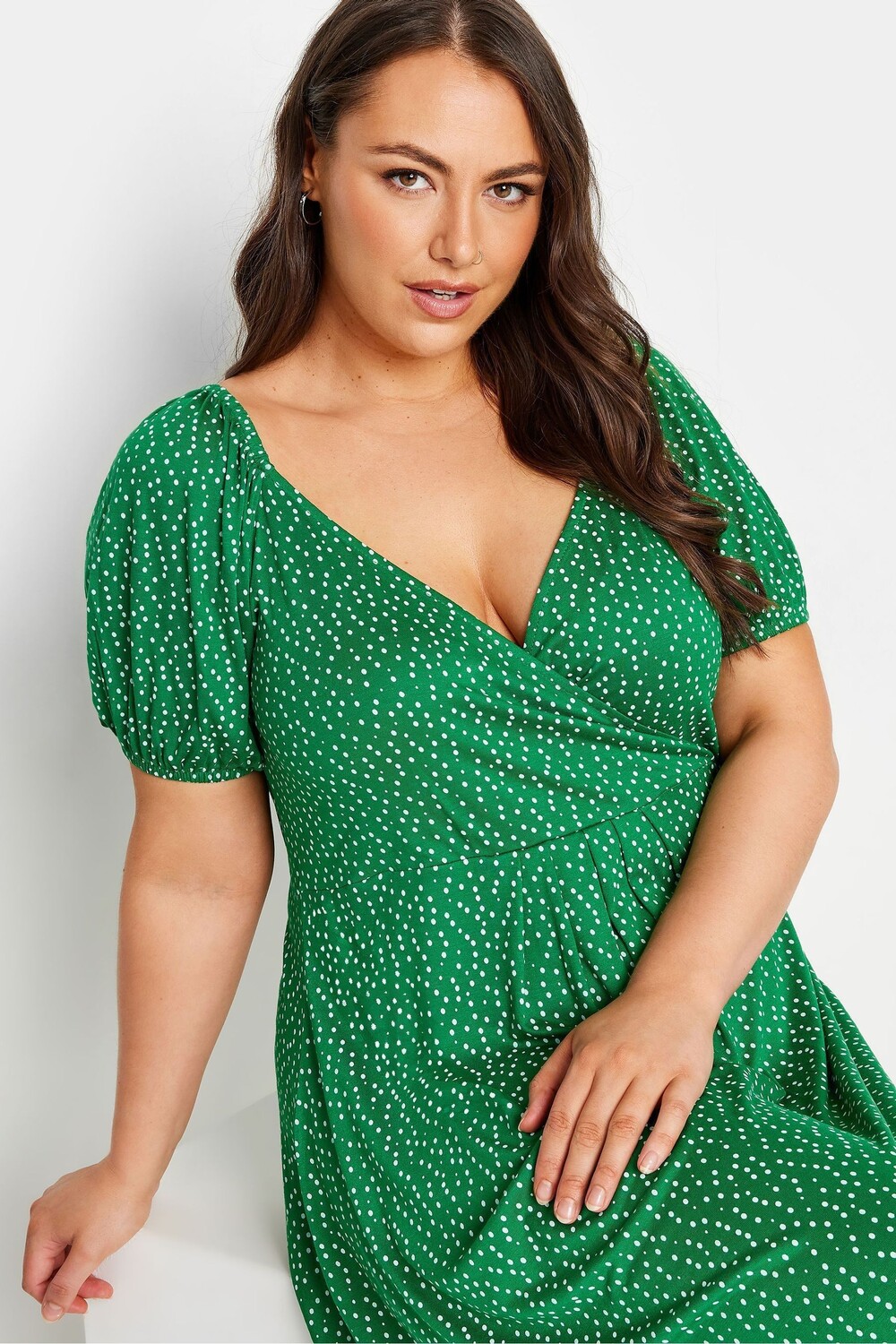 Платье халат в горошек Yours Curve, зеленый