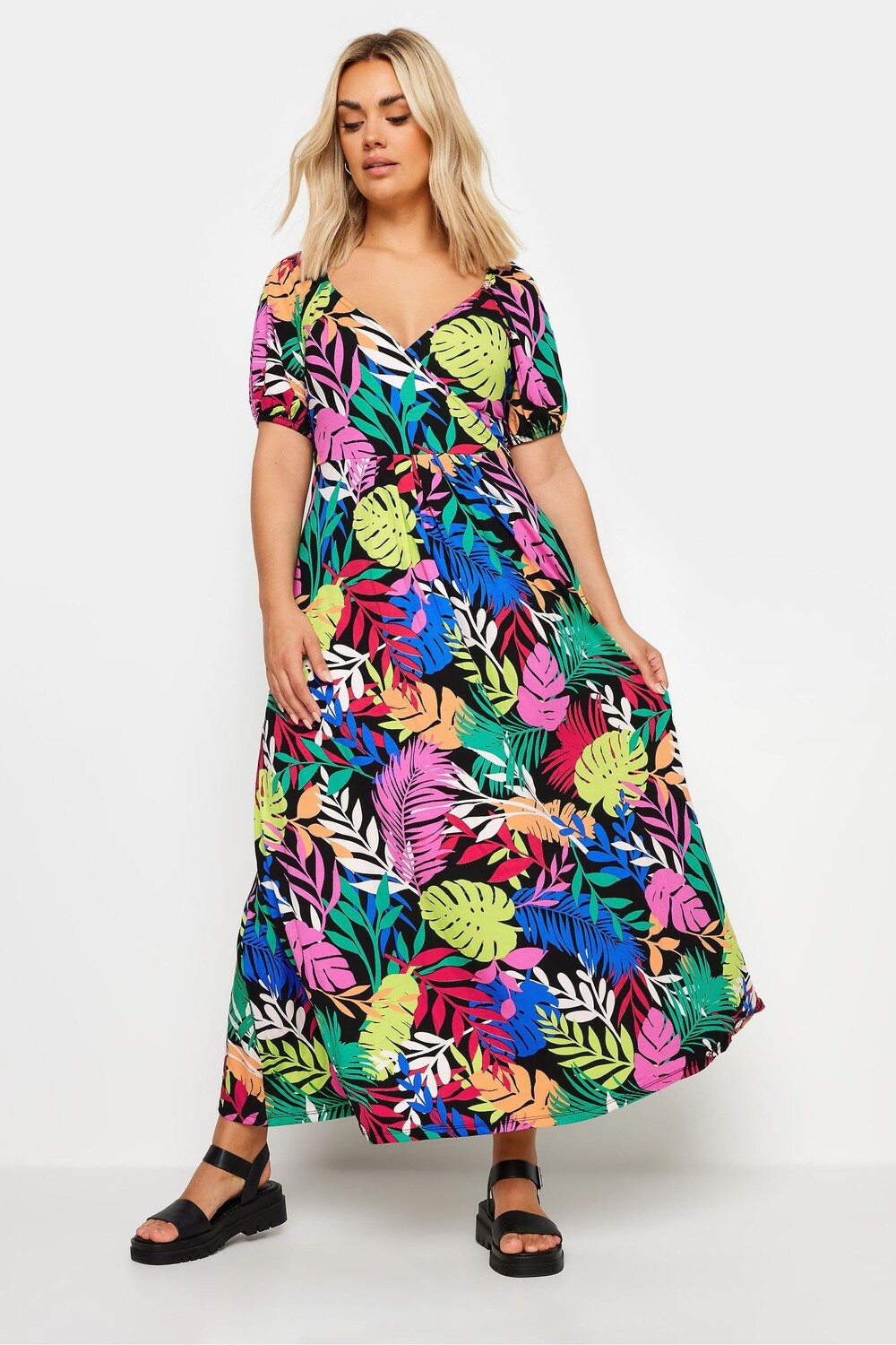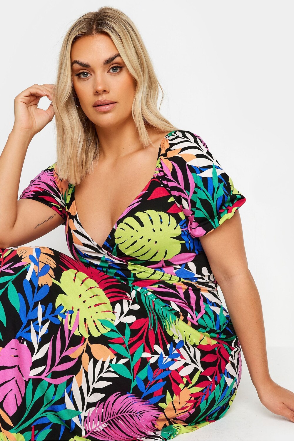 Платье халат с радужными листьями Yours Curve, черный 5 727₽