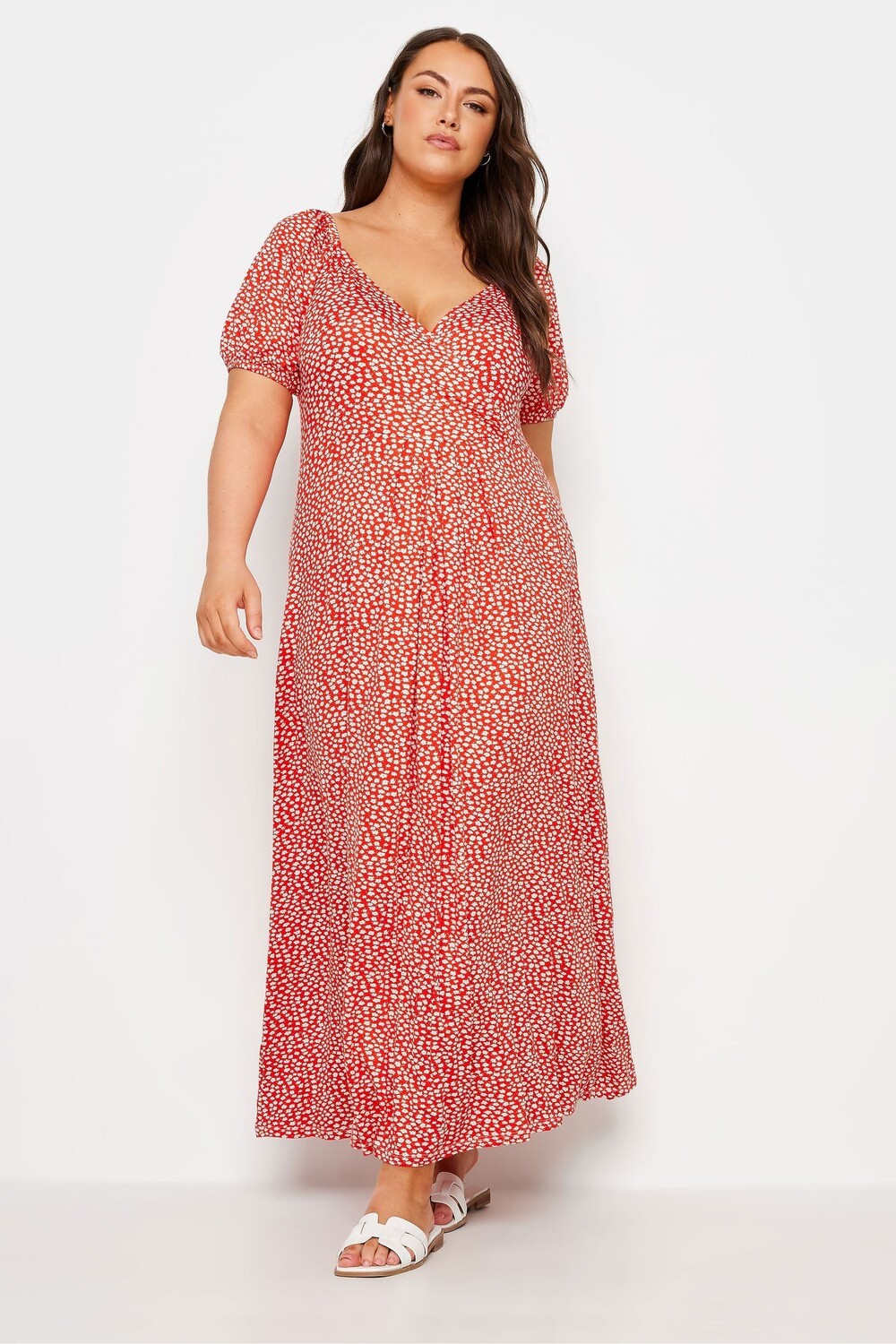 Платье халат в горошек Yours Curve, красный 4 457₽