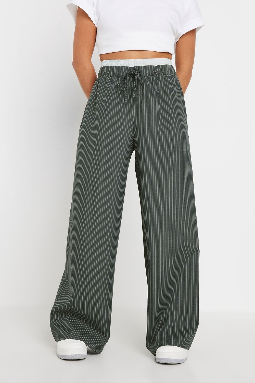 Широкие брюки в полоску Pixiegirl Petite, серый