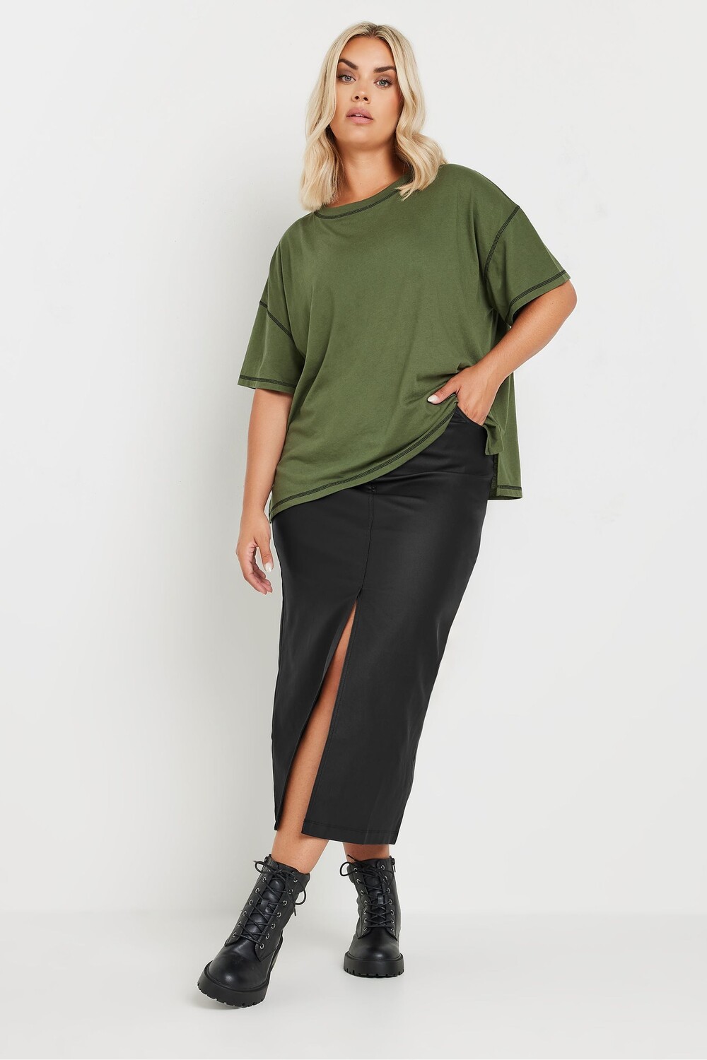 Юбка мидакси с покрытием и разрезом спереди Yours Curve, черный