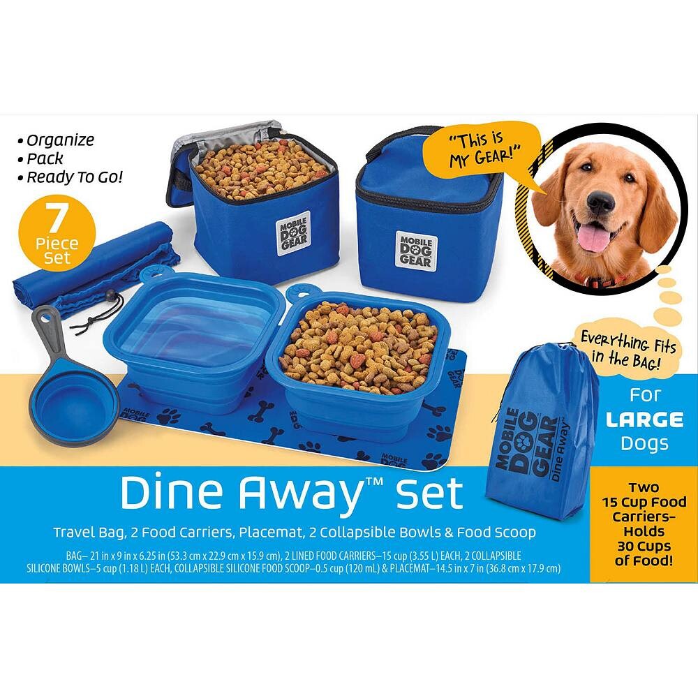 Дорожные сумки с аксессуарами для собак Mobile Dog Gear облегчают путешествие с собакой. Наша сумка Dine Away Bag — это удобный и простой способ носить с собой только еду, воду и лакомства для вашей собаки.