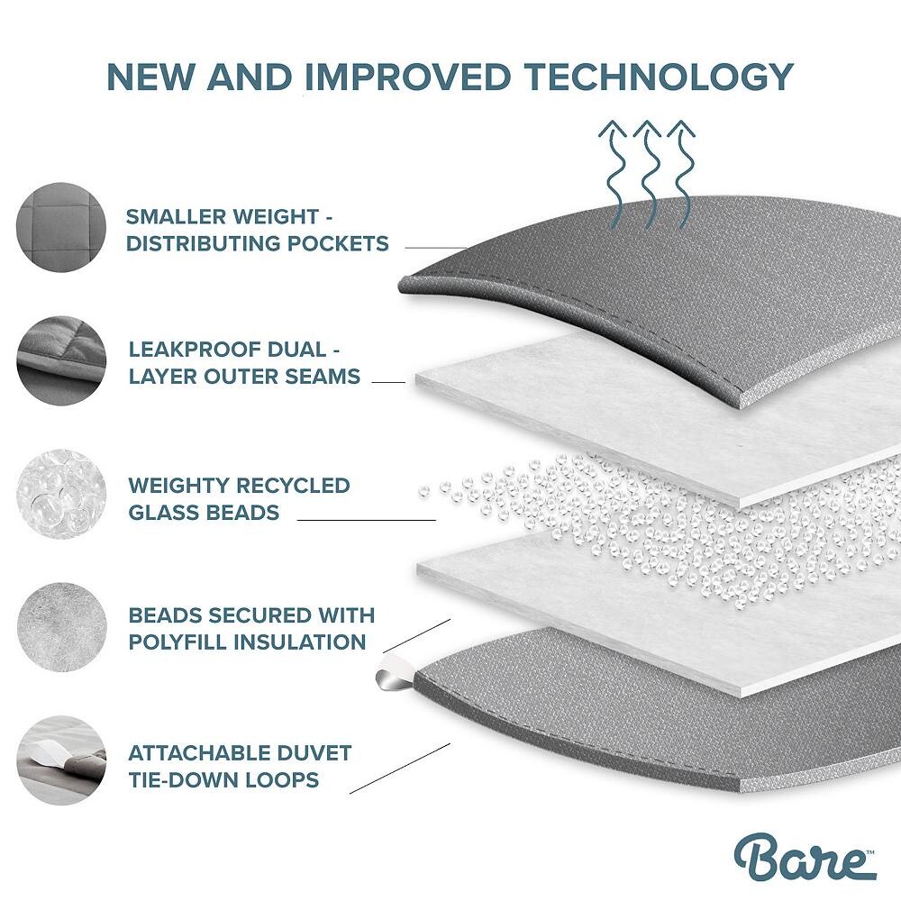 Утяжеленное одеяло Bare Home изготовлено вручную с помощью уникального процесса, позволяющего равномерно распределить вес внутри 4х4 двухслойных карманов из 100% хлопка, чтобы обеспечить идеальное успокаивающее давление по всему одеялу. Каждое отделение содержит оптимальное сочетание волокнистого наполнителя и нетоксичных сверхтонких стеклянных шариков для идеального контроля температуры, пропускающего воздух. Мы рекомендуем выбирать одеяло, вес которого составляет около 10% от веса вашего тела. Утяжеленные одеяла предназначены для покрытия вашего тела и имеют размер, позволяющий закрывать только верхнюю часть кровати. Наше утяжеленное одеяло помогает естественным образом снять напряжение и обеспечивает невероятный комфорт.