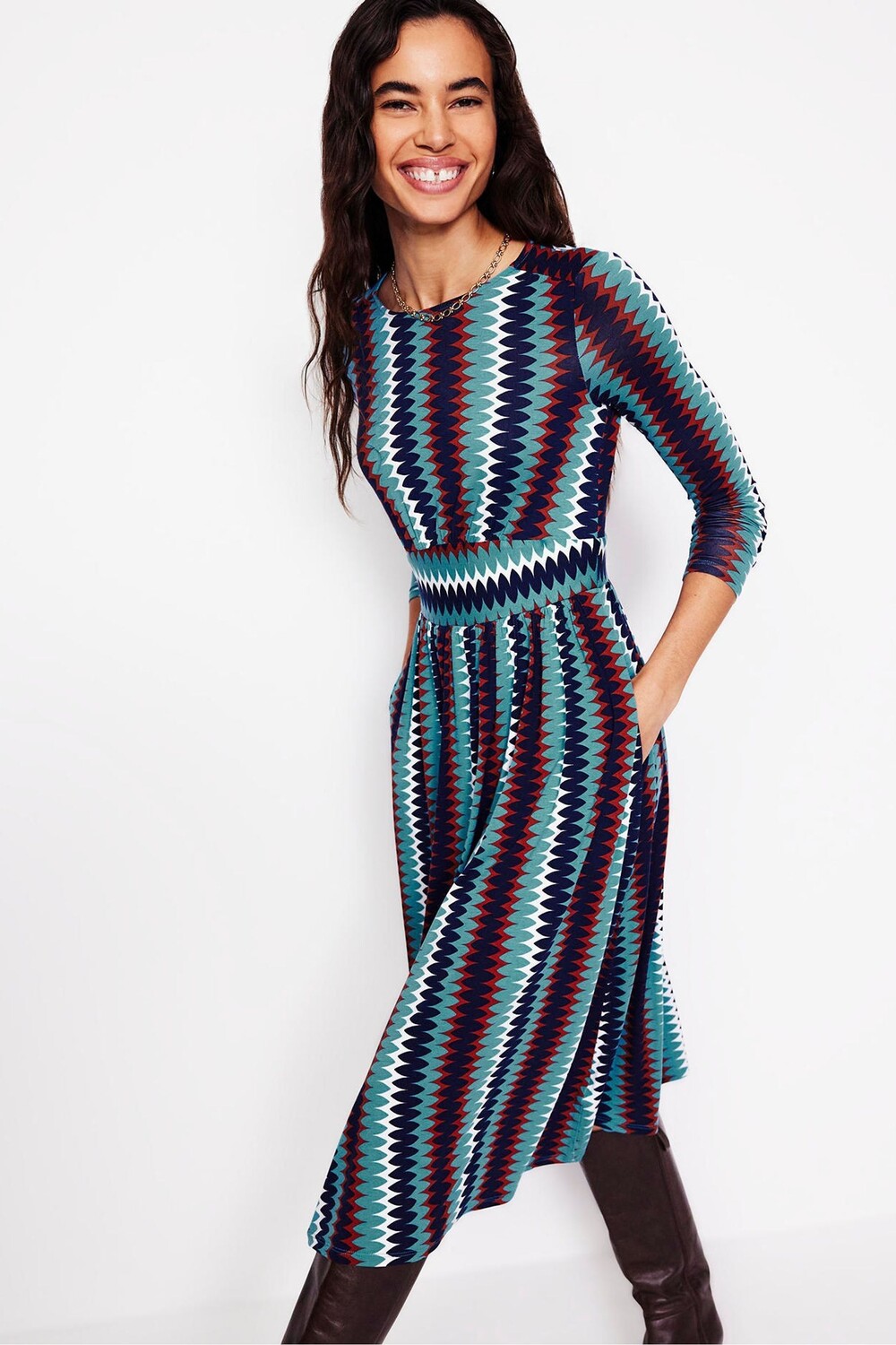 Платье из джерси с длинными рукавами Thea Boden, синий
