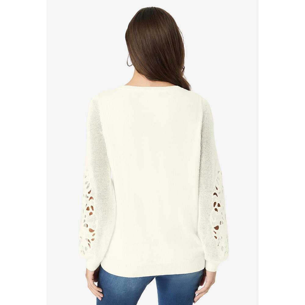 Вышитые вырезы на круглом вырезе и рукавах играют ведущую роль в этом романтическом свитере, предназначенном как для верхней, так и для нижней одежды. Ребристые манжеты и нижний край. Длина 28. Машинная стирка. Импортированный. Хлопок/акрил