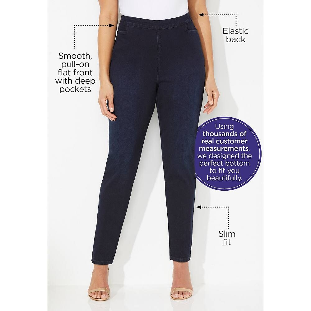 Приятный фаворит, который можно надеть как вверх, так и вниз. Наша универсальная модель без застежки имеет плоскую переднюю часть и широкую эластичную заднюю часть для гладкой и удобной посадки. Доступны модели из эластичного денима или эластичного твила. Тонкие штанины легко сочетаются со всем, что есть в вашем гардеробе. Дополнено боковыми прорезными карманами. 98% хлопок/2% спандекс. Машинная стирка. Импортированные брюки больших размеров. Обычный внутренний шов: 29 дюймов, маленький внутренний шов: 26. Большие размеры 0X-6X, маленькие большие размеры 0XWP-5XWP. Екатерины