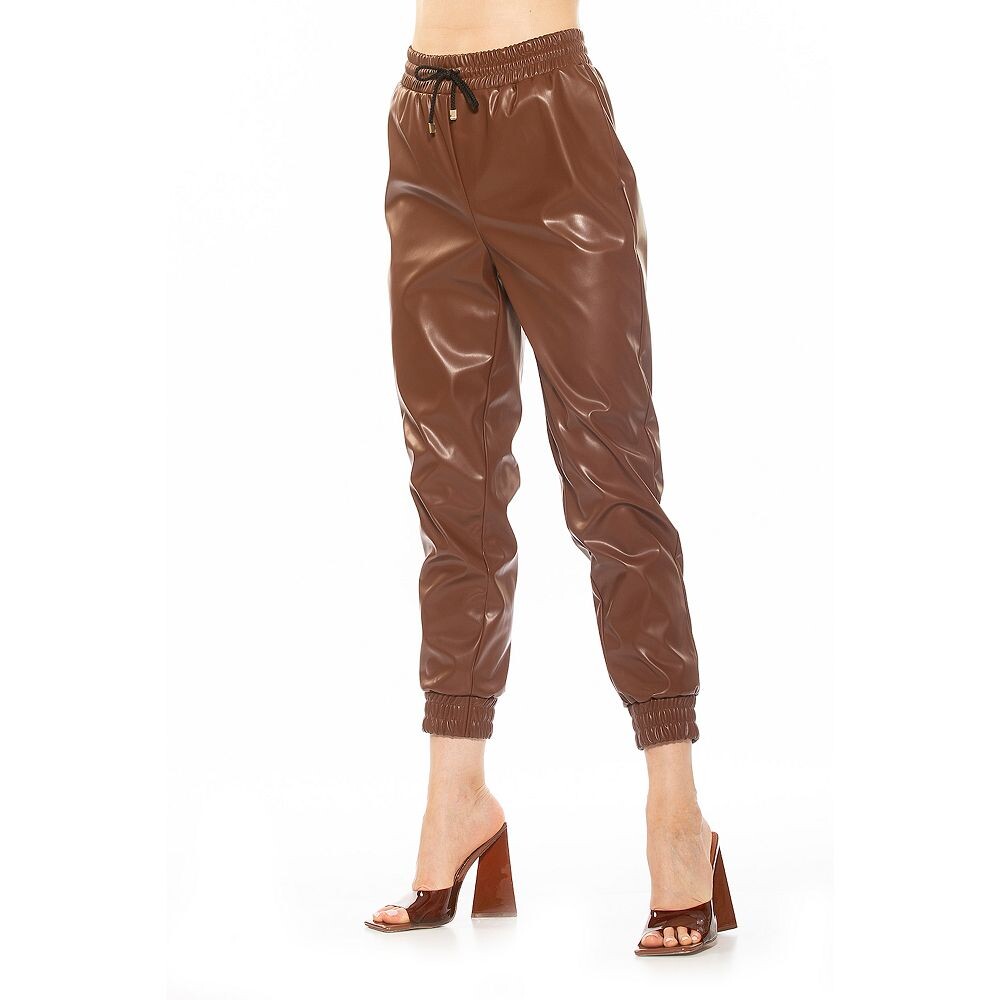 Брюки-джоггеры Axel — незаменимая вещь в вашем гардеробе. Эти брюки выполнены из роскошной эластичной ткани из искусственной кожи, имеют свободные брюки-джоггеры, приталенные манжеты на штанинах и кулиску.