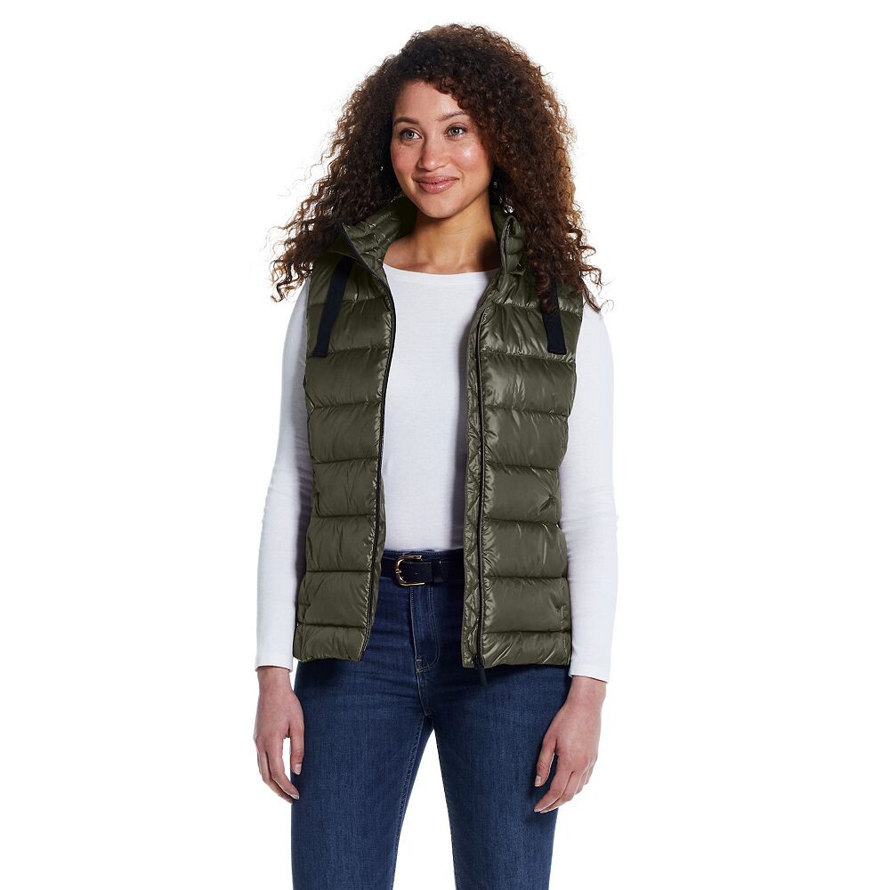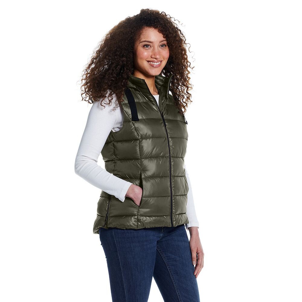 Сохраняйте тепло и стильно с этим женским пуховым жилетом с капюшоном Weathercast.