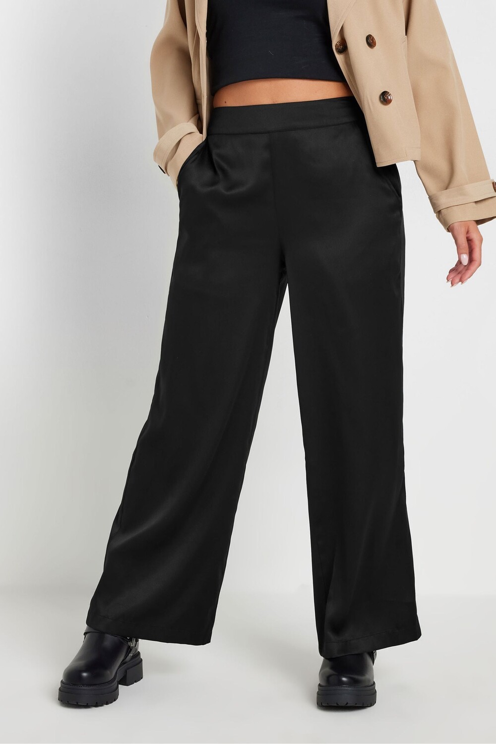 Широкие атласные коричневые брюки Pixiegirl Petite, черный