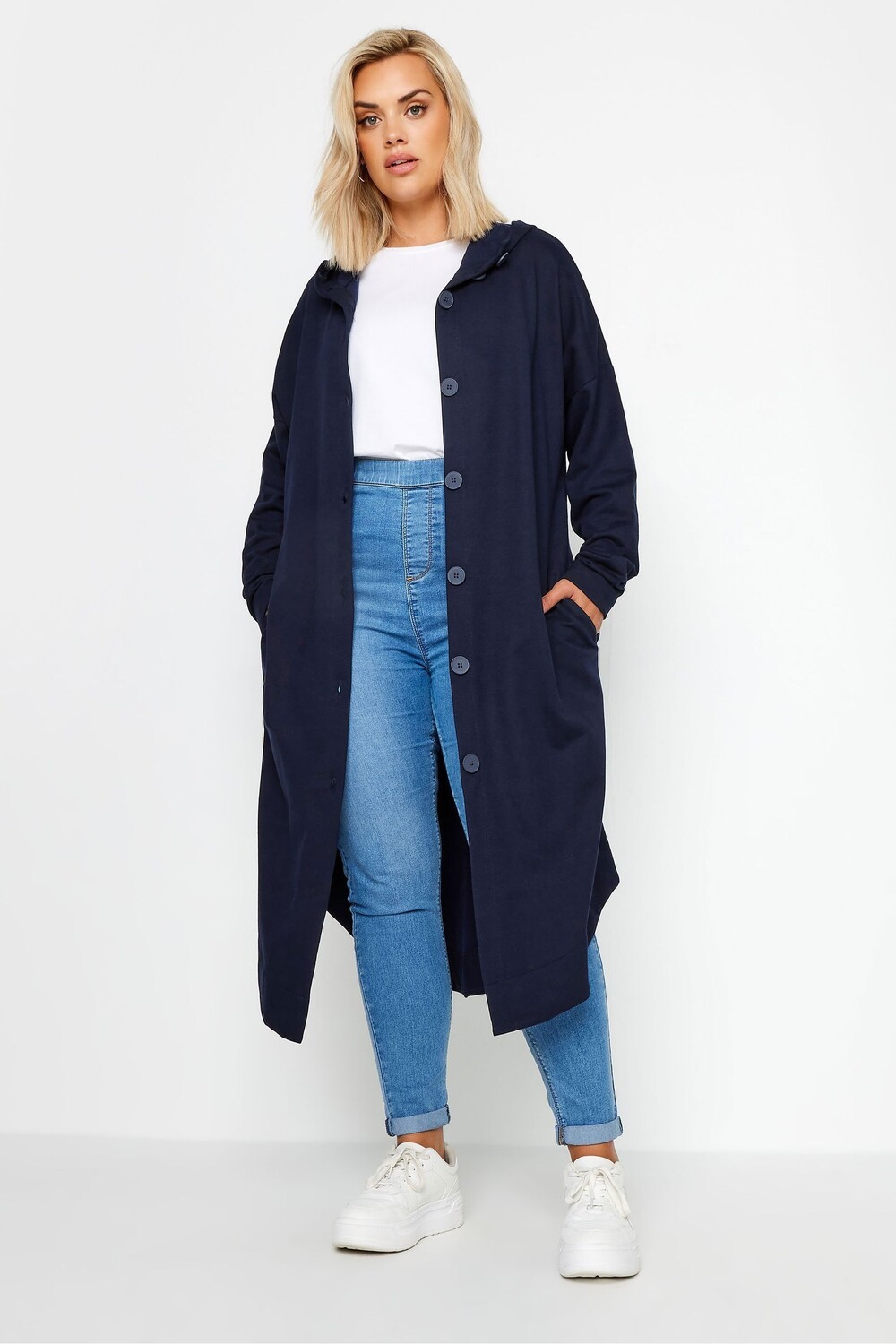 Куртка с капюшоном на пуговицах Yours Curve, синий