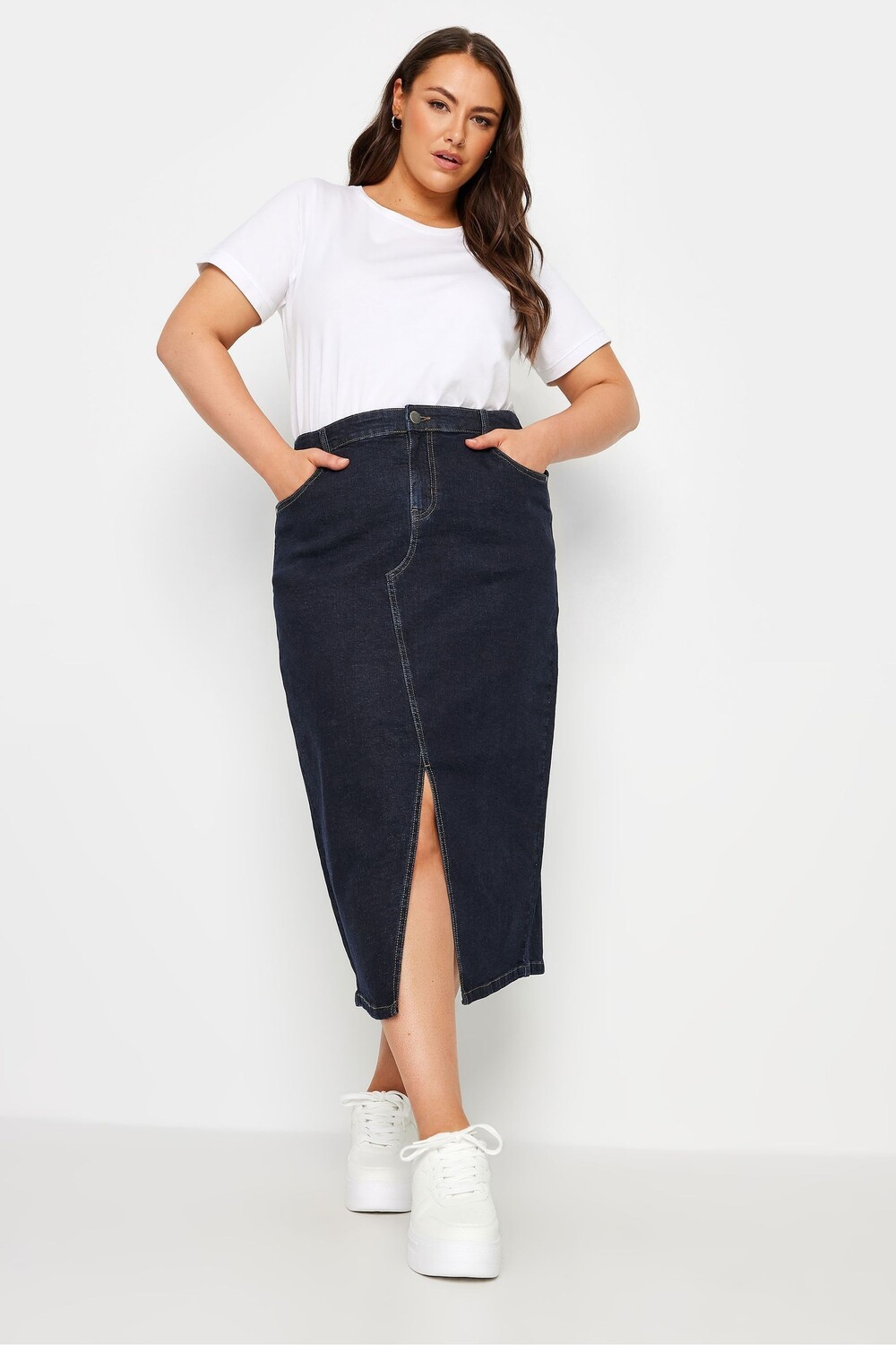 Юбка миди из эластичного денима Yours Curve, синий