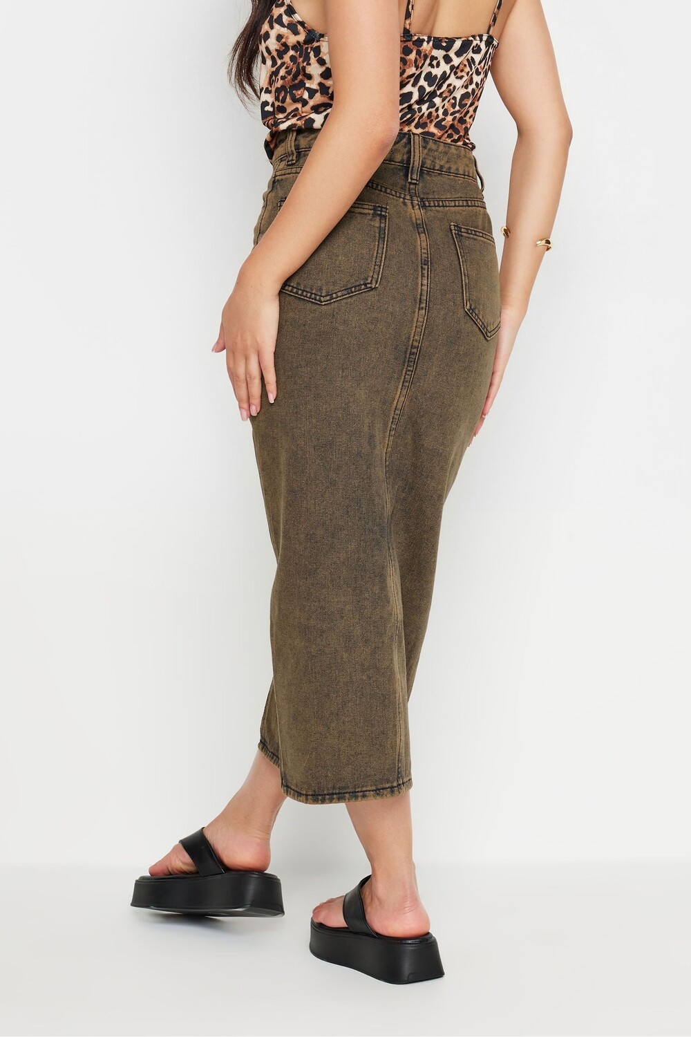 Юбка миди с эффектом кислотной стирки Pixiegirl Petite, коричневый