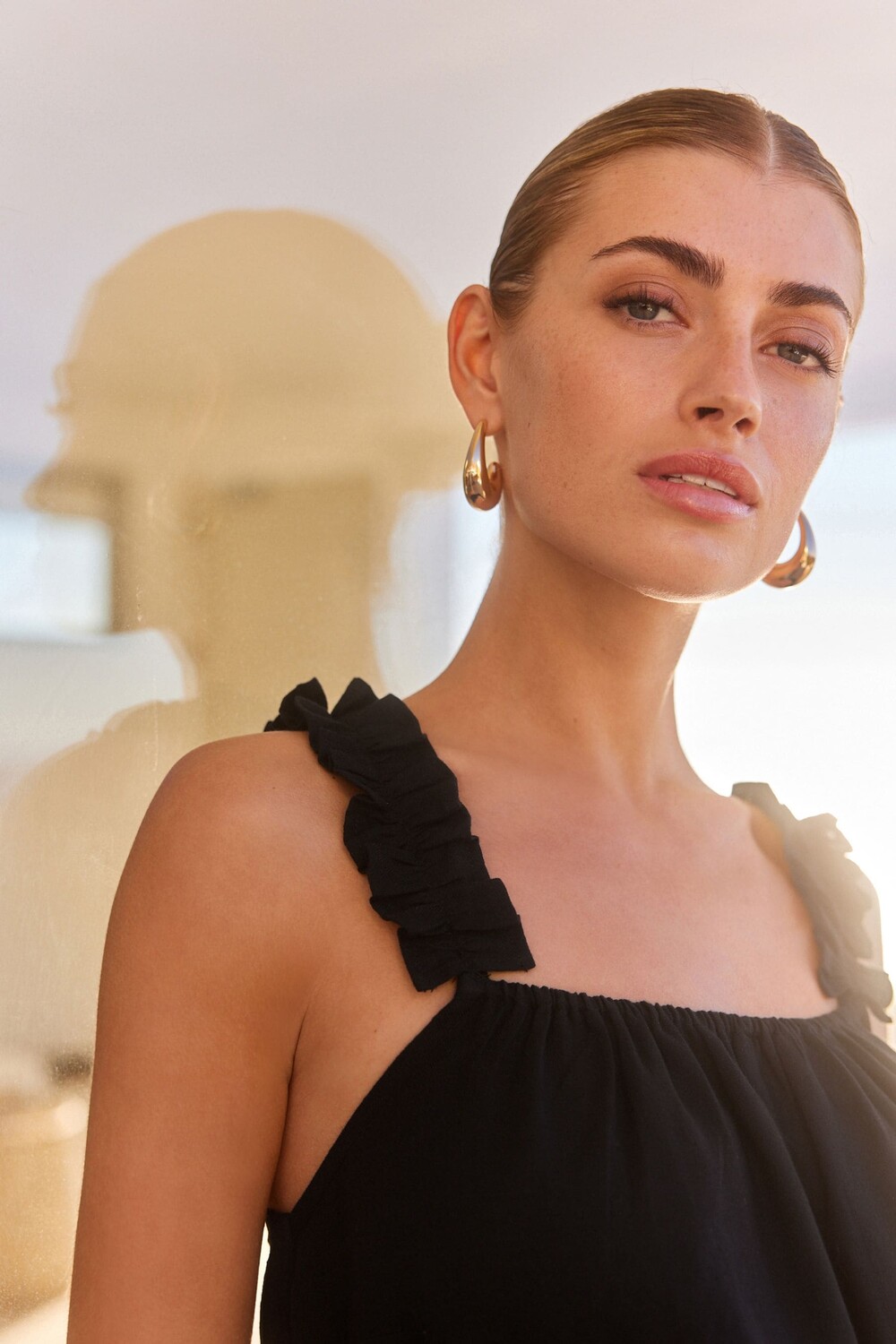 Комбинезон с широкими штанинами и оборками из 100% хлопка Next, черный
