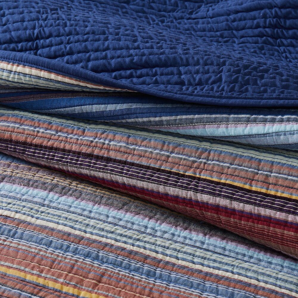 Вам понравится внешний вид этого комплекта одеял Brooklyn Loom Met Stripe Yarn Dye с нашивками.