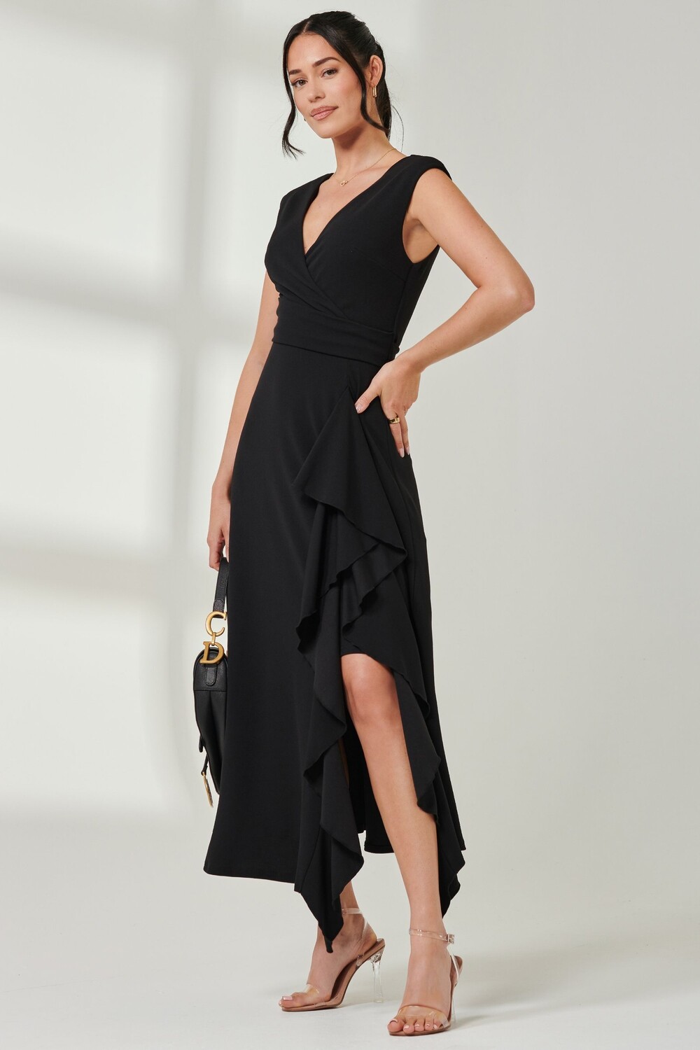 Платье макси с запахом и оборкой спереди Jolie Moi, черный