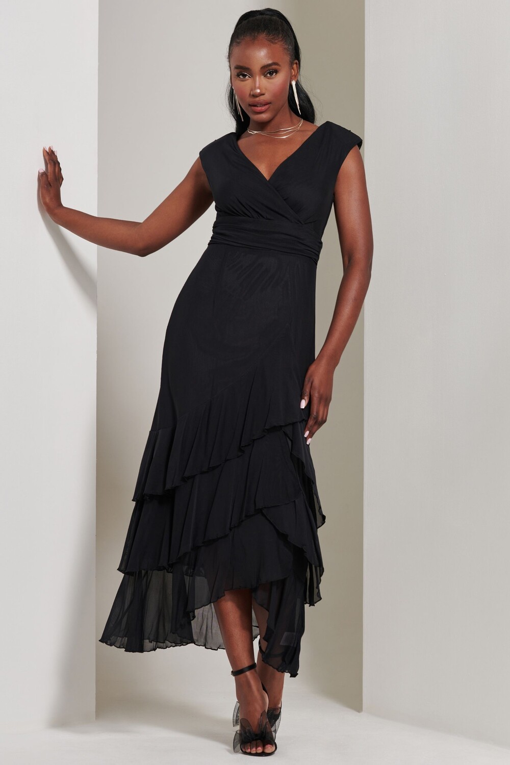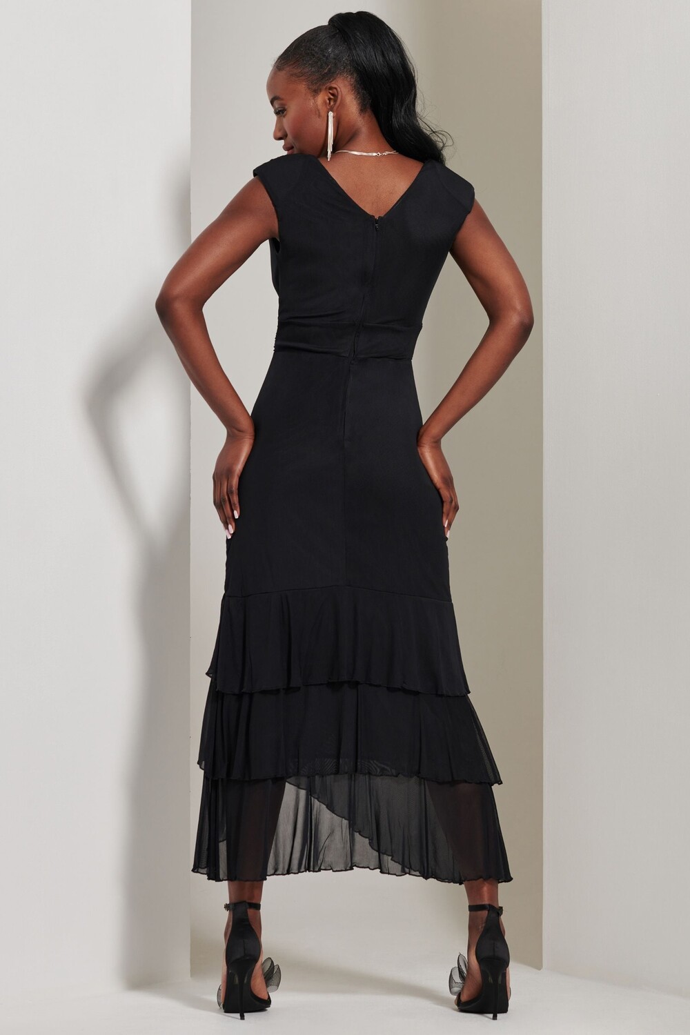 Платье макси с сетчатой оборкой и лифом обручем Jolie Moi, черный 7 016₽