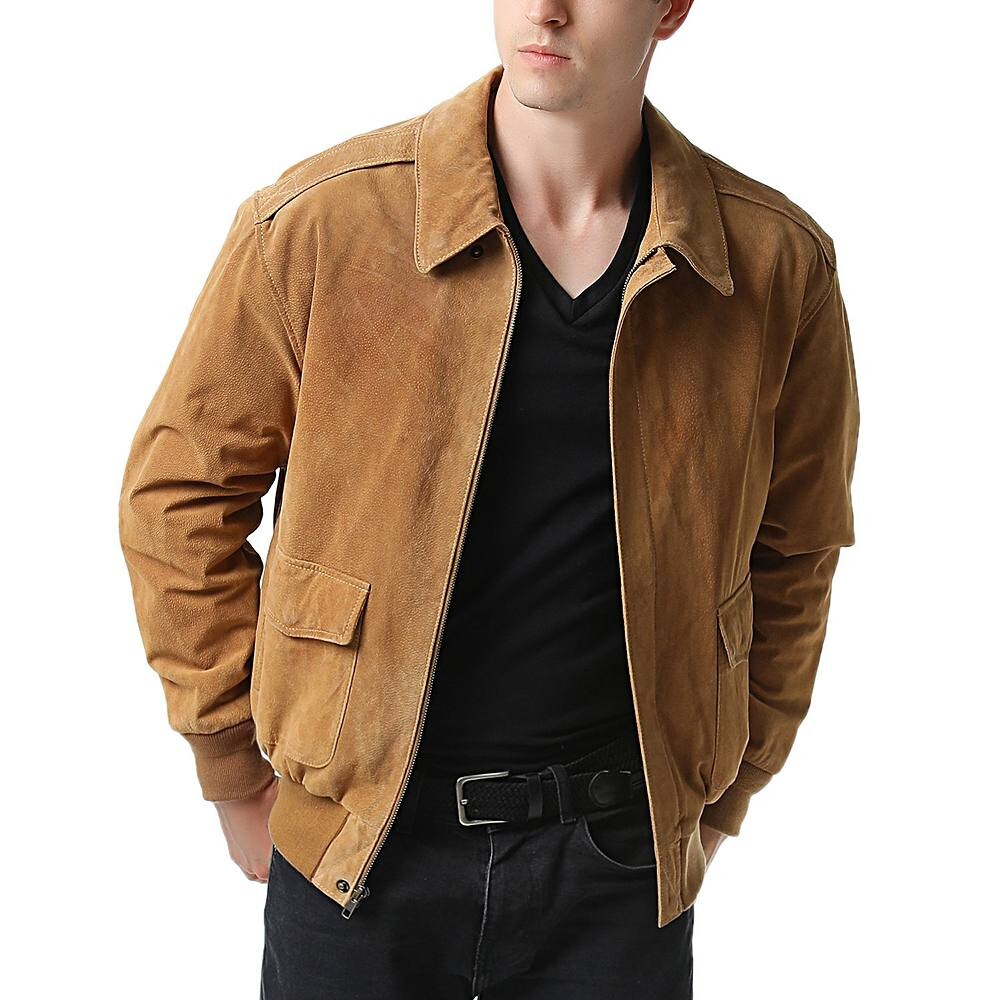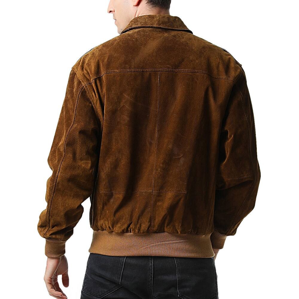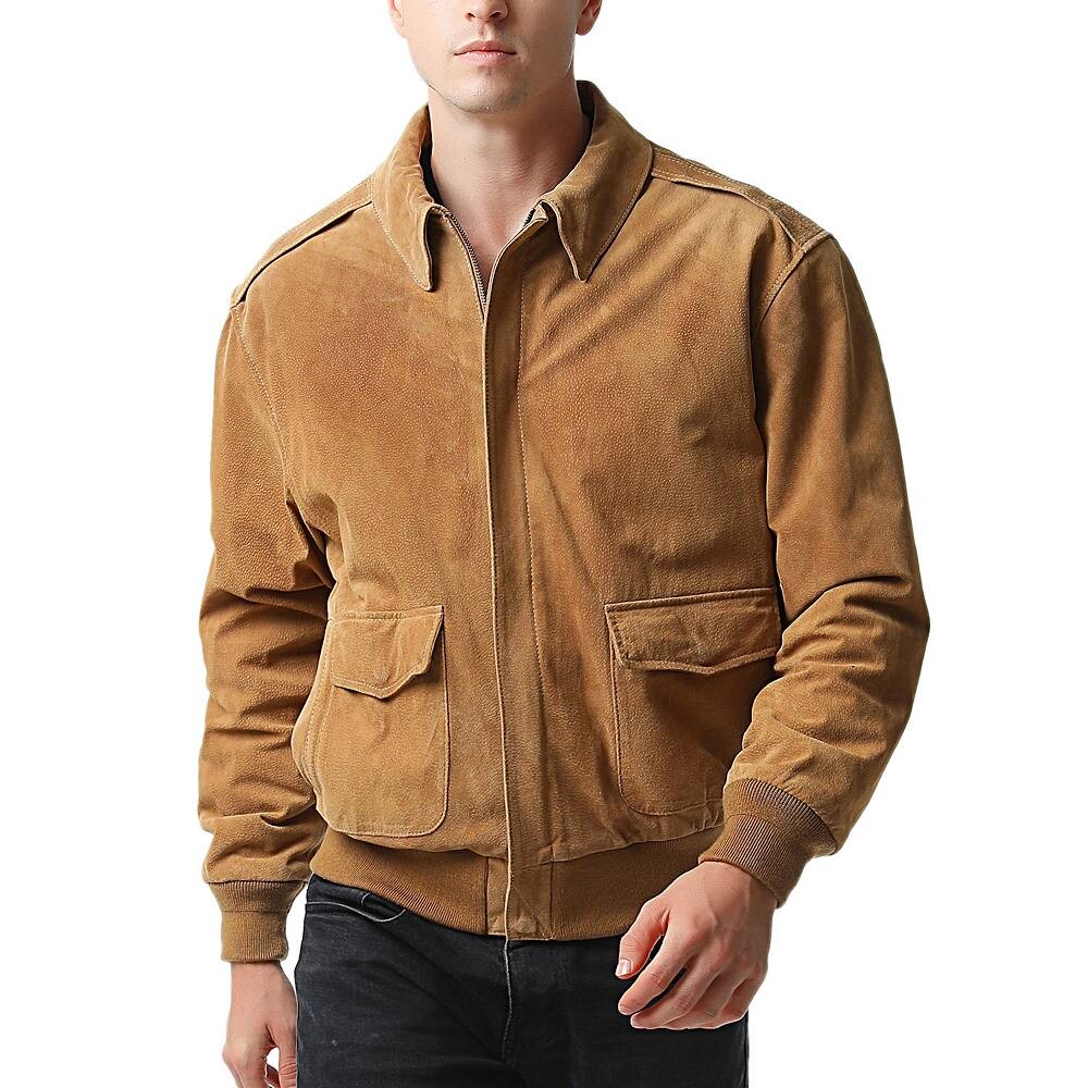 Замшевая кожаная куртка-бомбер A-2 изготовлена ​​по тем же строгим стандартам, что и настоящая военная куртка A-2. Карманы с двойным входом, а также ребристые манжеты и нижний край для оптимальной посадки и комфорта. Отпечатанный U