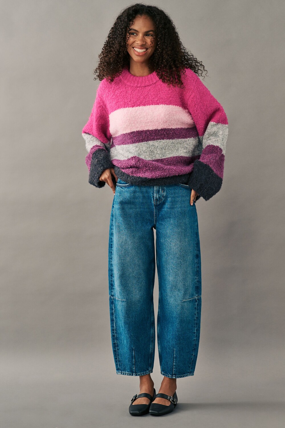 Джемпер с круглым вырезом из букле Next, розовый