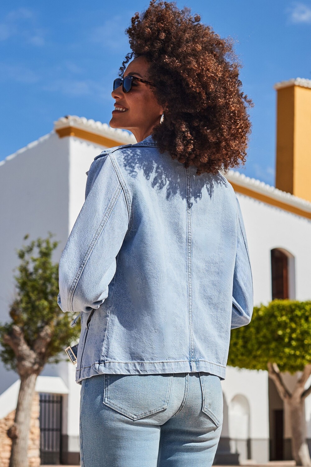 Джинсовая байкерская куртка из 100% хлопка Sosandar, синий