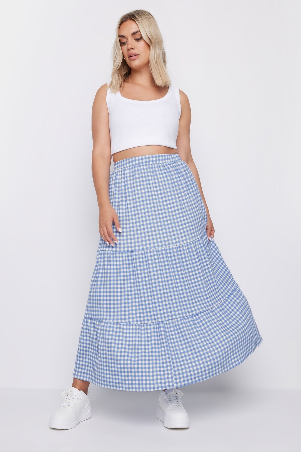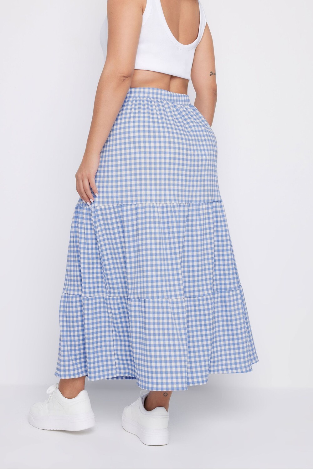 Юбка макси с текстурой в клетку гингем Yours Curve, синий