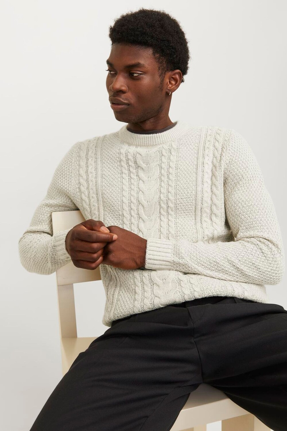 Джемпер с круглым вырезом, вязка косами Jack & Jones, белый 4 142₽