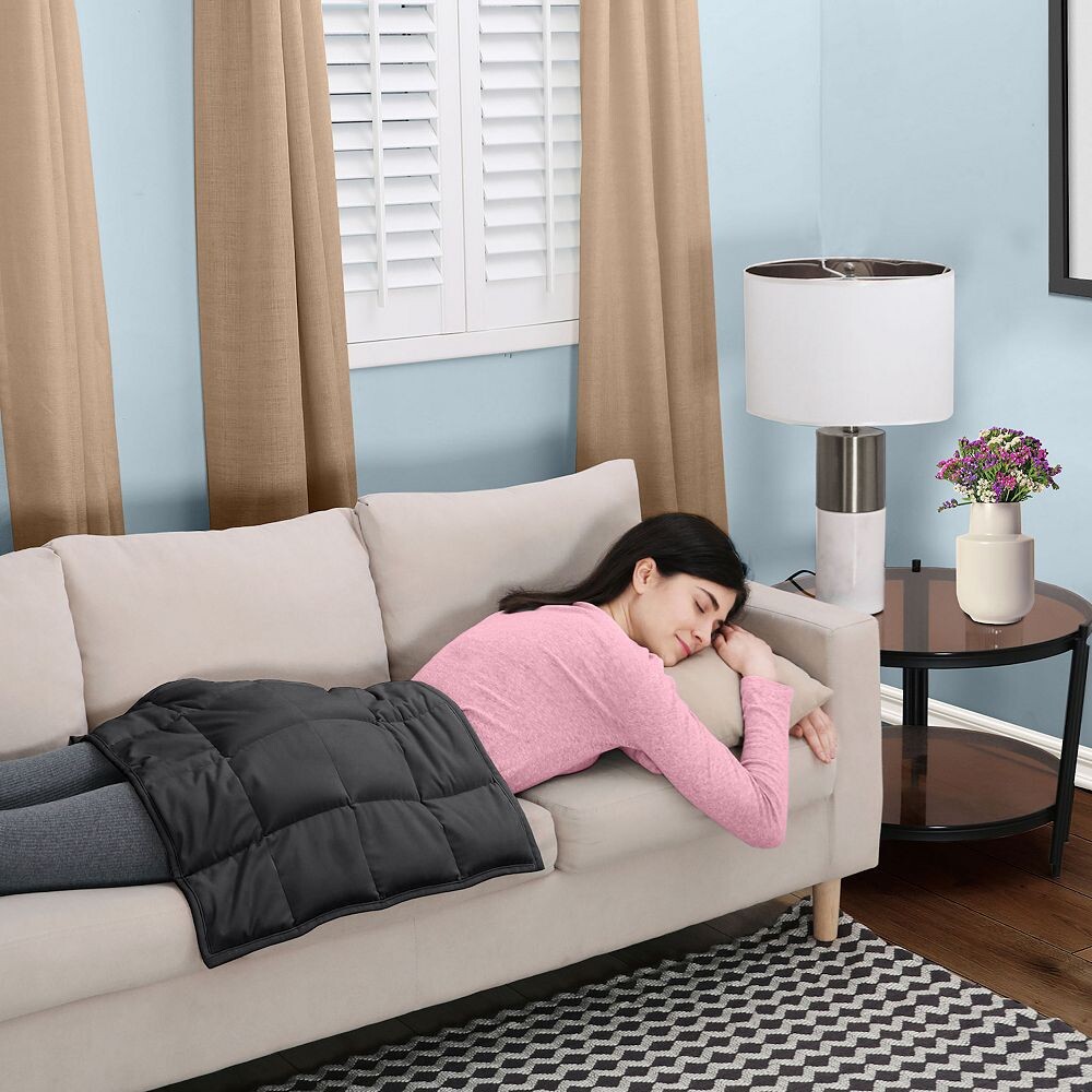 Расслабьтесь и отдохните с этим 5-фунтовым тренажером Dream Lab. Утяжеленное одеяло на коленях.
