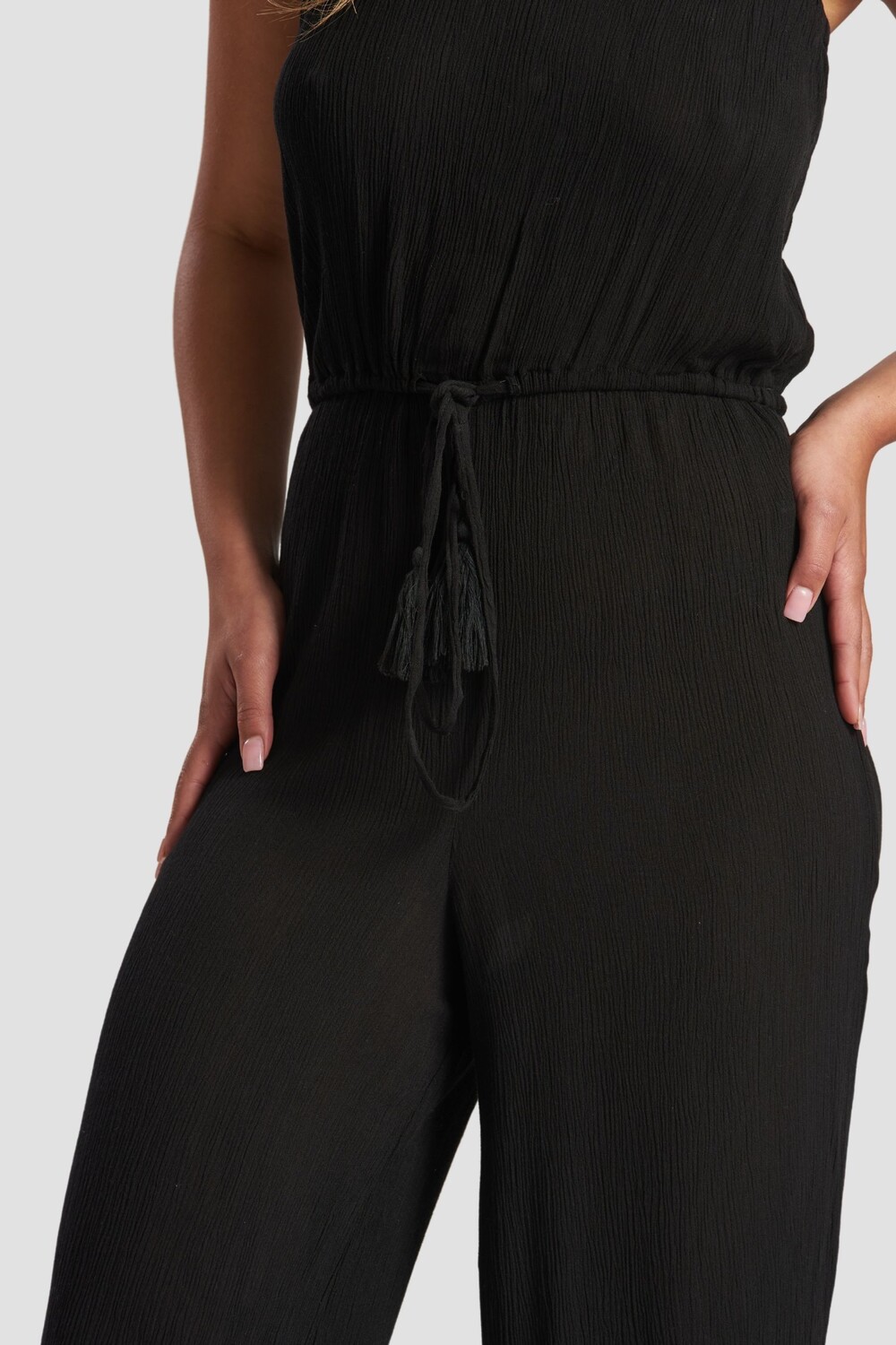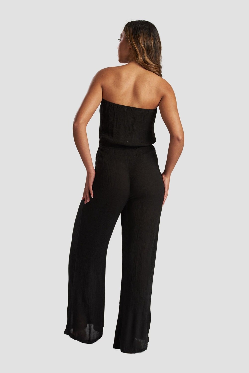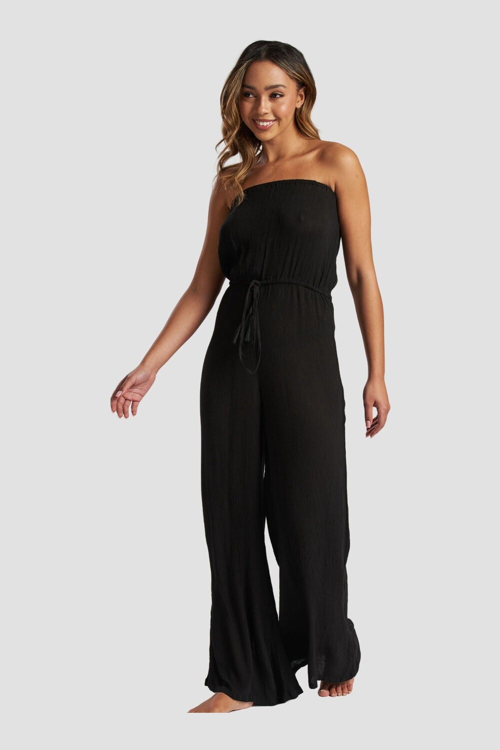Комбинезон без бретелек из жатой вискозы South Beach, черный