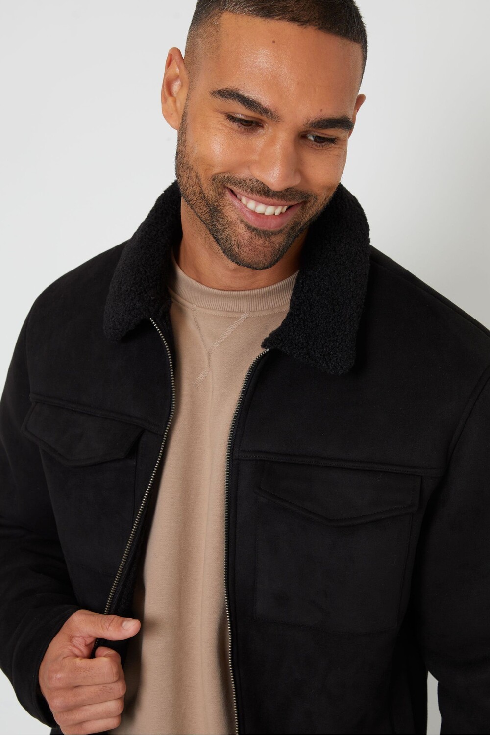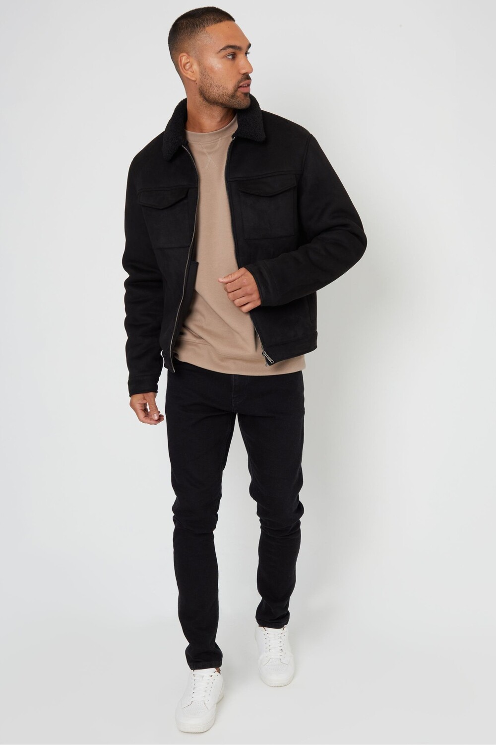 Куртка авиатор с подкладкой из искусственного меха и замши «борг» Threadbare, черный 8 389₽