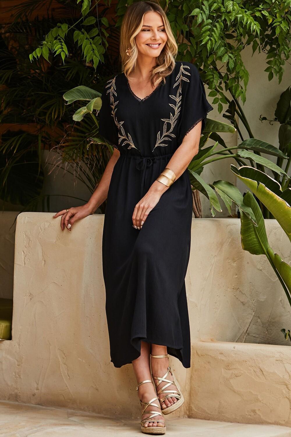 Длинное платье с вышитыми деталями Sosandar, черный 9 820₽