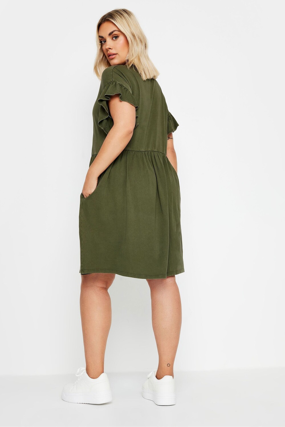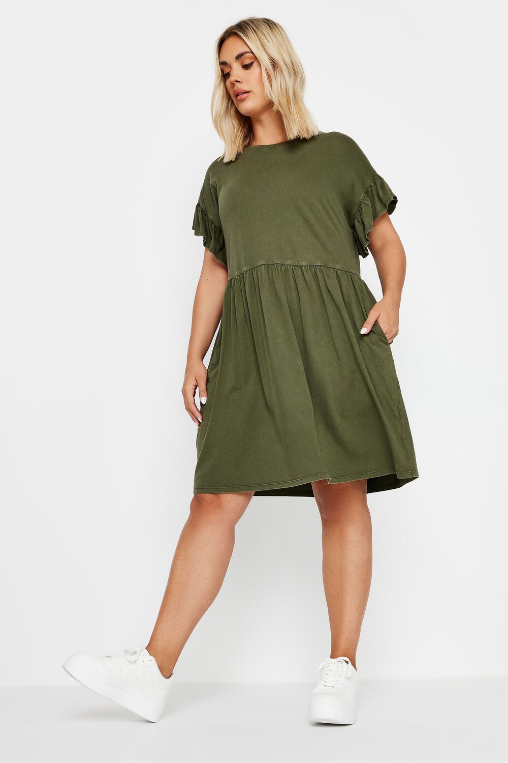 Платье с оборками и эффектом кислотной стирки Yours Curve, зеленый