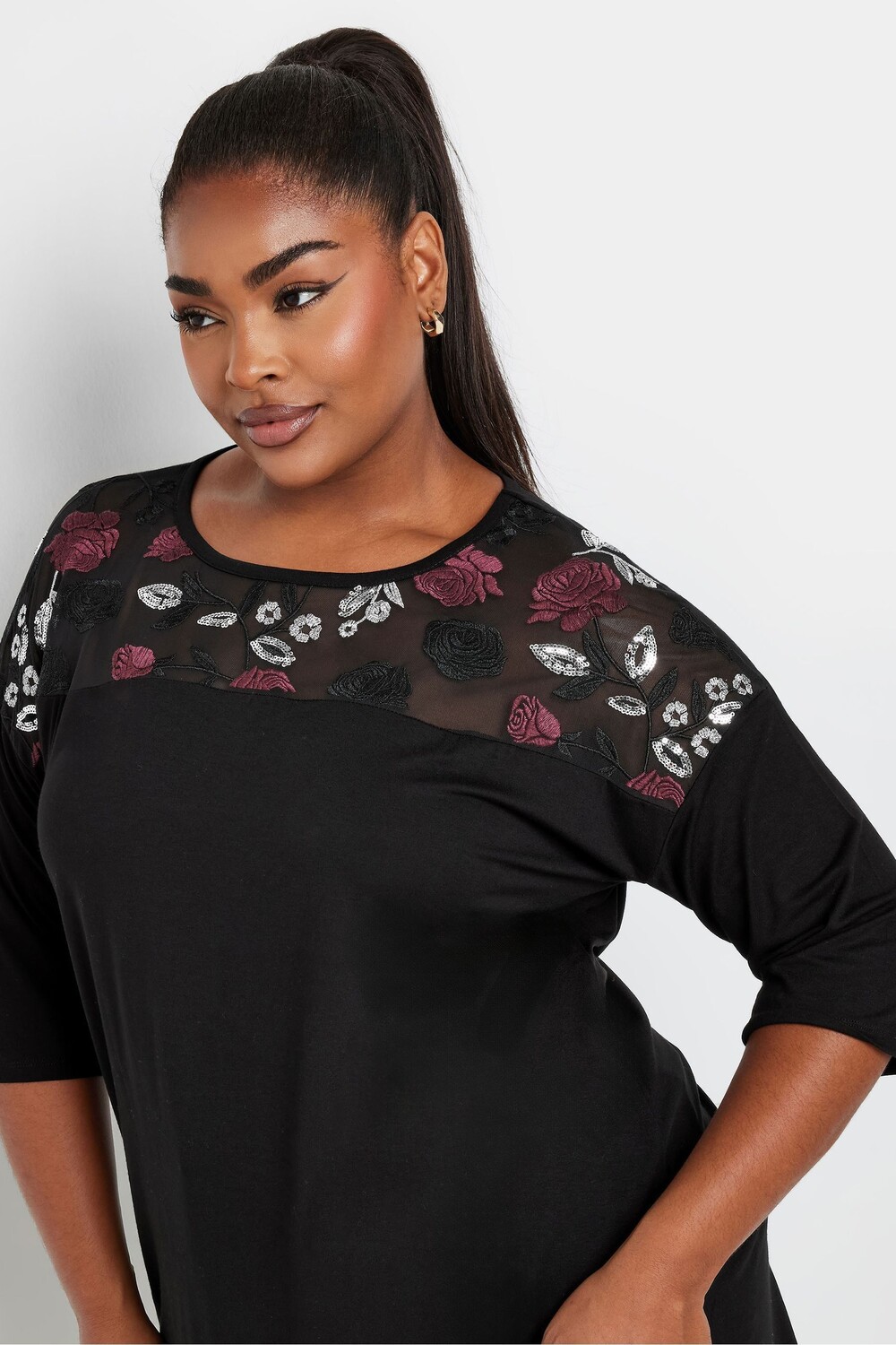 Украшенный топ с рукавами 3/4 Yours Curve, черный