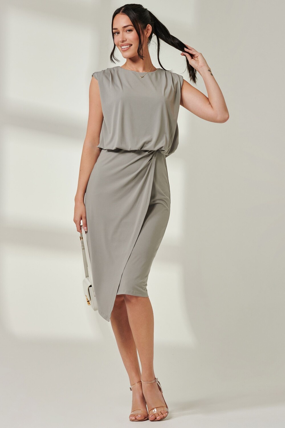 Платье карандаш с драпировкой и ярусами Jolie Moi, зеленый
