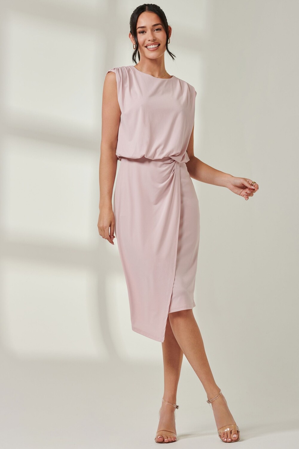 Платье карандаш с драпировкой и ярусами Jolie Moi, розовый