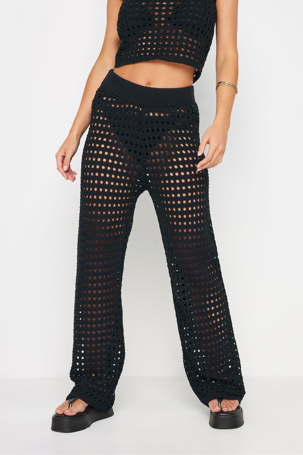 Вязаные брюки крючком Pixiegirl Petite, черный