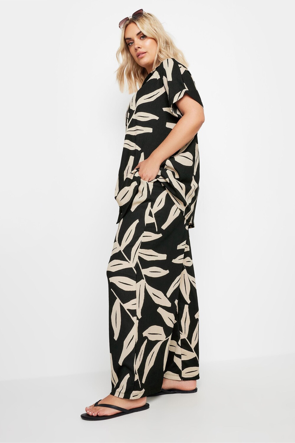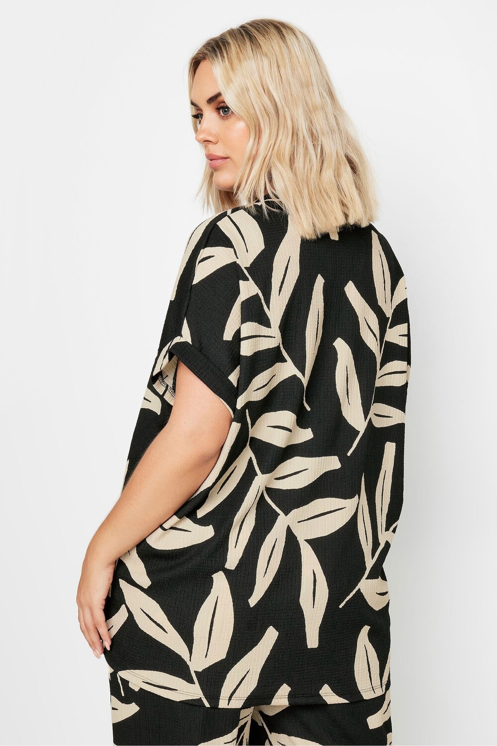 Рубашка с короткими рукавами и принтом «Листва» Yours Curve, черный