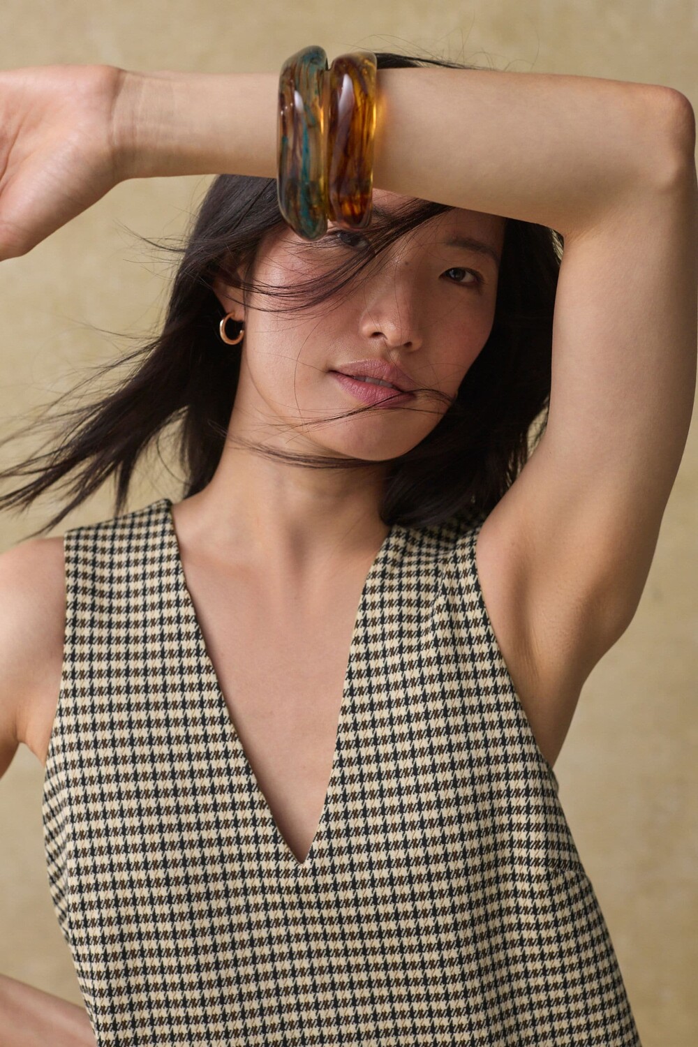 Материалы: Основная часть: 75% переработанный полиэстер, 21% вискоза Livaeco, 4% эластан. Подкладка: 100% полиэстер.