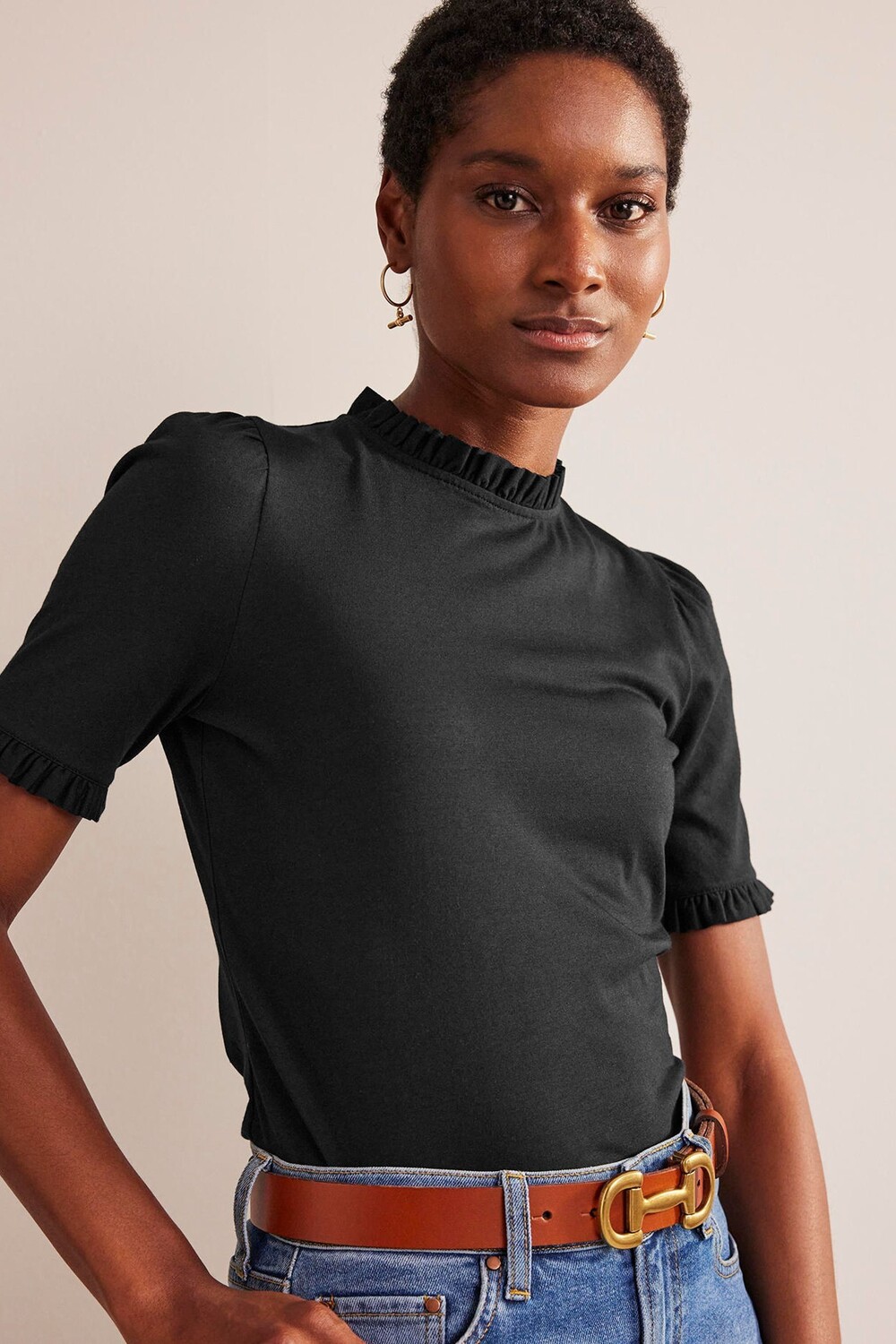 Футболка с супермягкой отделкой из оборки Boden, черный 7 511₽